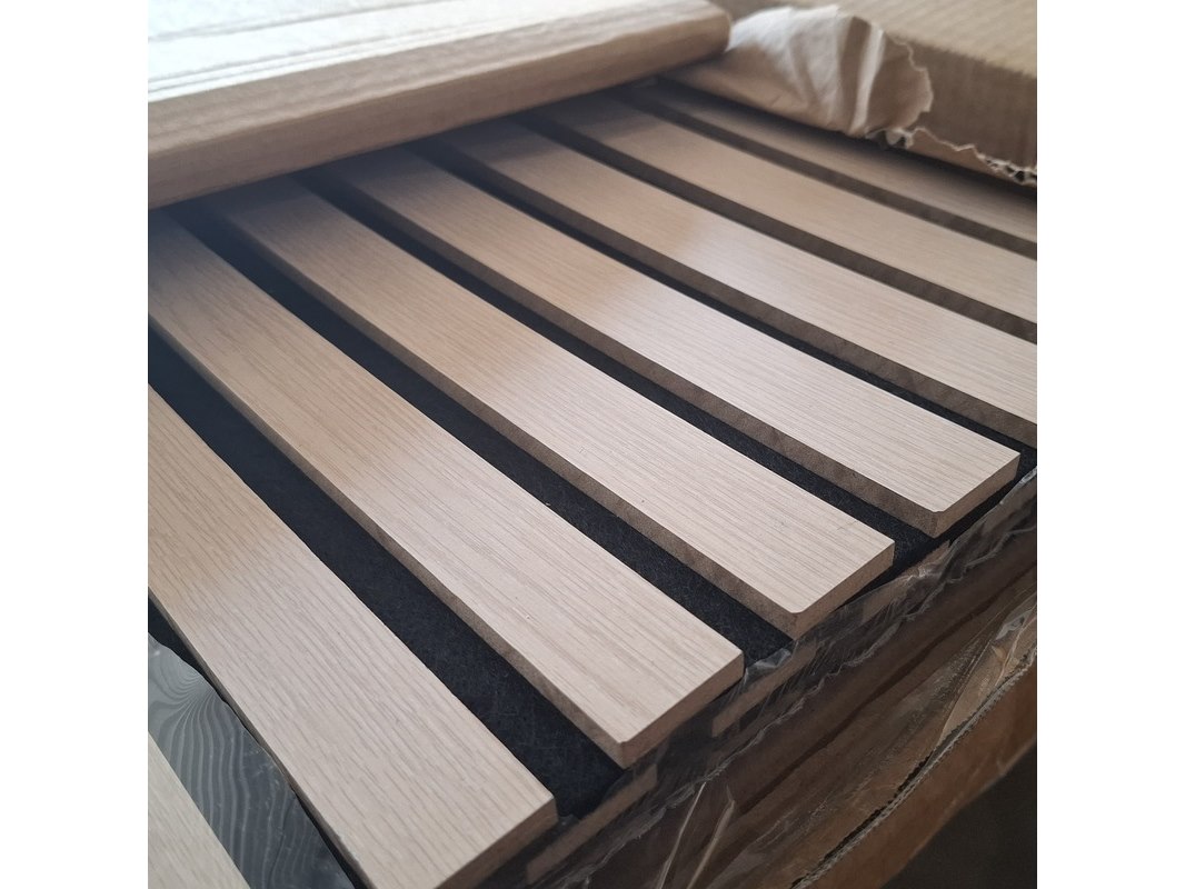 Product: Akoestisch wandpaneel Materiaal: Vilt mdf fineer Afmeting: 280x60 cm, 11 mm BouwJaar: 2026 Conditie: Nieuw Specificaties: Akoestisch paneel te verlijmen of schroeven op elke ondergrond/muur. Te zagen op maat. Verbeterd akoestiek isolatie en snel verfraaien van elke muur.