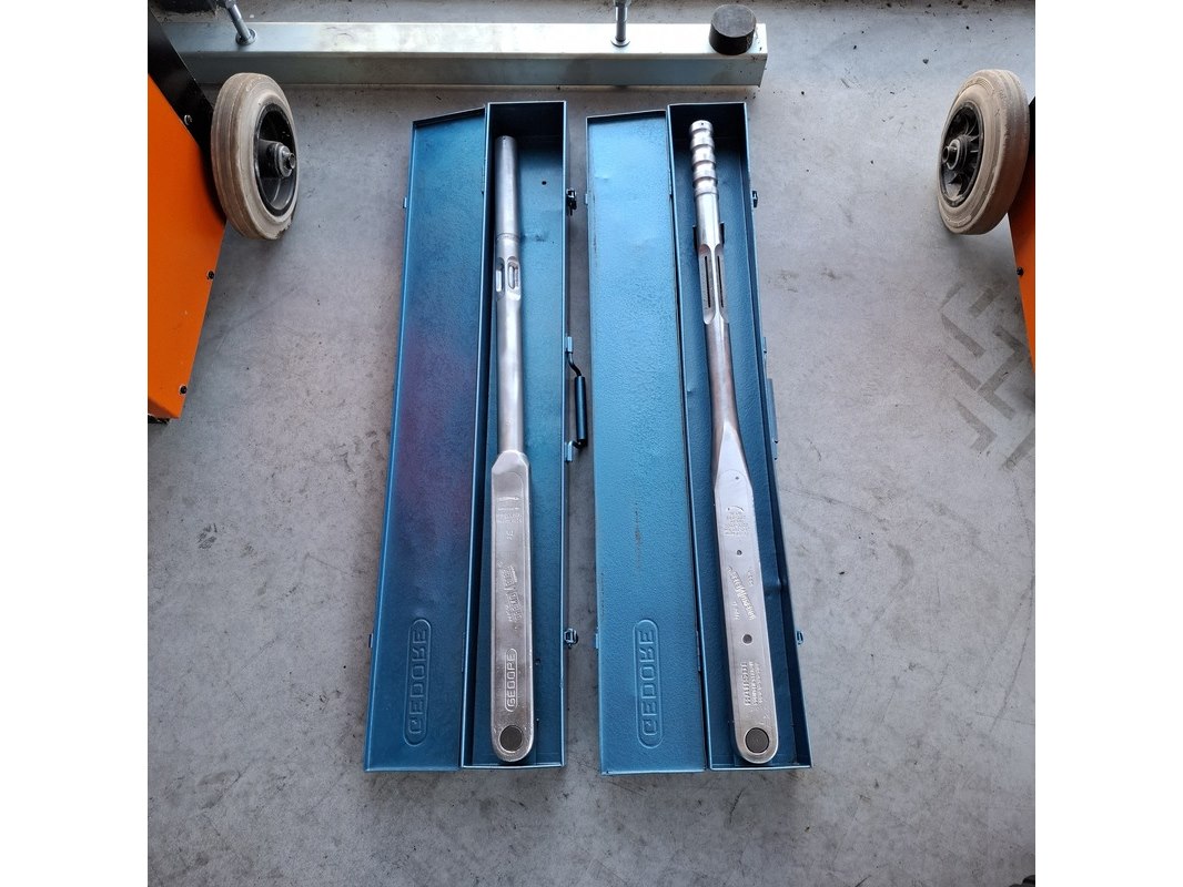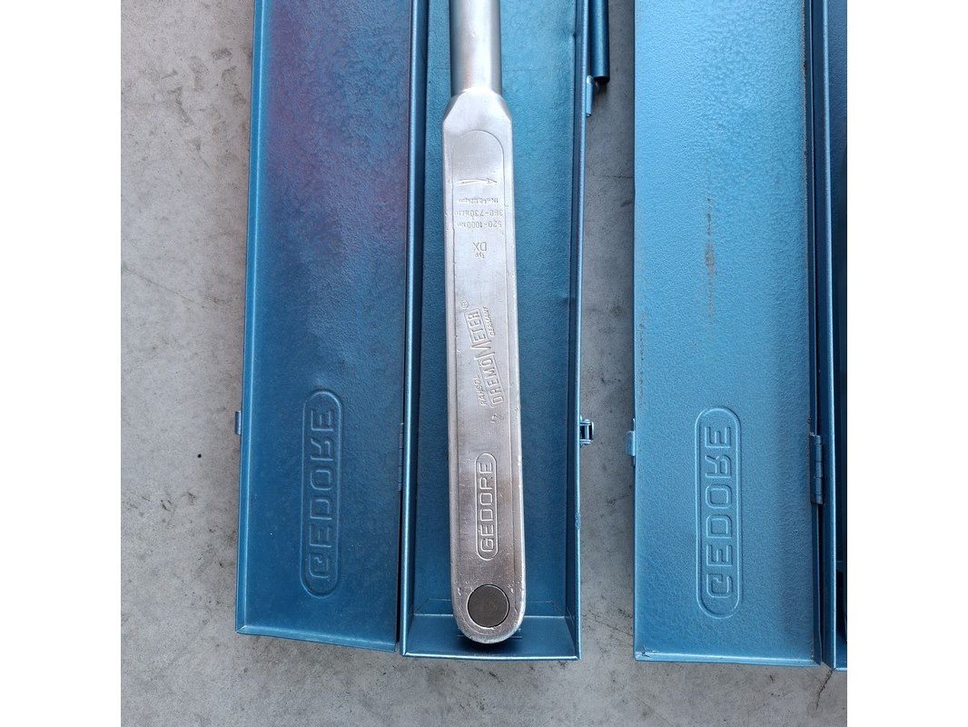 Merk: Gedore Product: Professionele Momentsleutel (140-760 Nm) Kleur: Grijs / Chroom Conditie: Gebruikt Specificaties: 2x Gedore Dremometer D – Professionele Momentsleutel (140-760 Nm) Hoogwaardige industriële momentsleutel van verchroomd staal. Onmisbaar voor gecontroleerd aandraaien bij zware montageklussen in de automotive en industrie. Belangrijkste specificaties: Bereik: 140 – 760 Nm. Aandrijving: 3/4" (19 mm) vierkant. Nauwkeurigheid: +/- 3% tolerantie (overtreft DIN/ISO normen). Constructie: Robuuste aluminiumlegering, extreem duurzaam en lichtgewicht voor zijn klasse. Kenmerk: "Automatic Short-Path Release" (duidelijke klik- en voelbaar signaal bij bereiken moment). Staat: Gebruikt, in technisch goede staat.