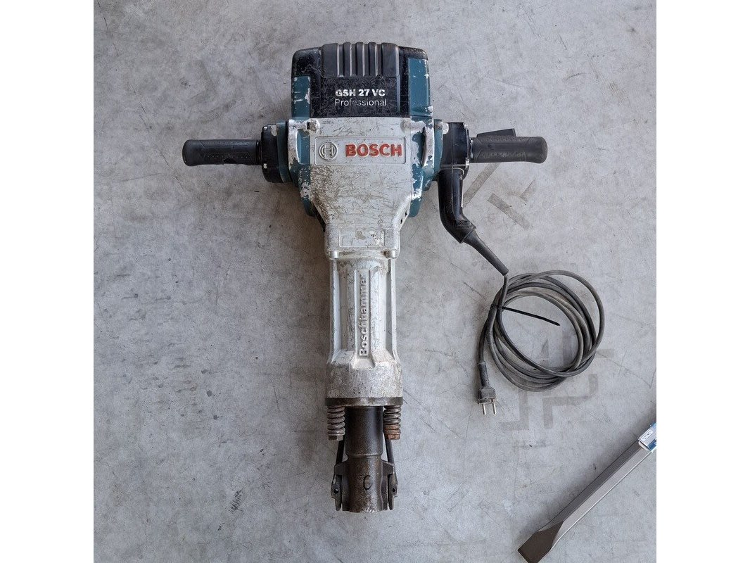 Merk: Bosch Product: Breekhamer / Hakhamer Kleur: Blauw Conditie: Gebruikt Specificaties: Bosch GSH 27 VC Professional – Zware Sloophamer (62 Joule) Krachtigste elektrische breekhamer van Bosch, ontworpen voor het zwaarste sloopwerk in beton en steen. Ondanks de enorme slagkracht zorgt de Vibration Control voor comfortabel en gecontroleerd werken. Specificaties: Slagenergie: 62 Joule (maximale sloopkracht) Vermogen: 2.000 Watt Opname: 28 mm binnenzeskant (HEX) Gewicht: 29,5 kg Vibratiedemping: Slechts 8,5 m/s² Staat: Gebruikt, goedwerkend Extra: Wordt geleverd inclusief 1 nieuwe beitel.