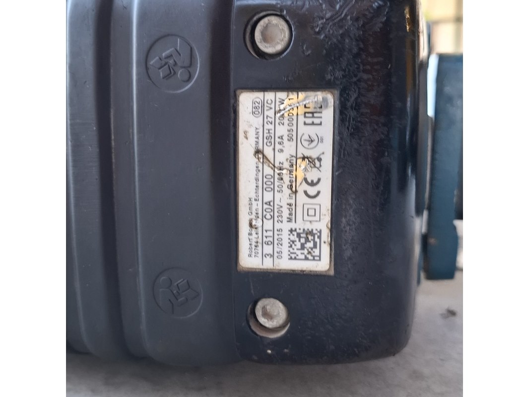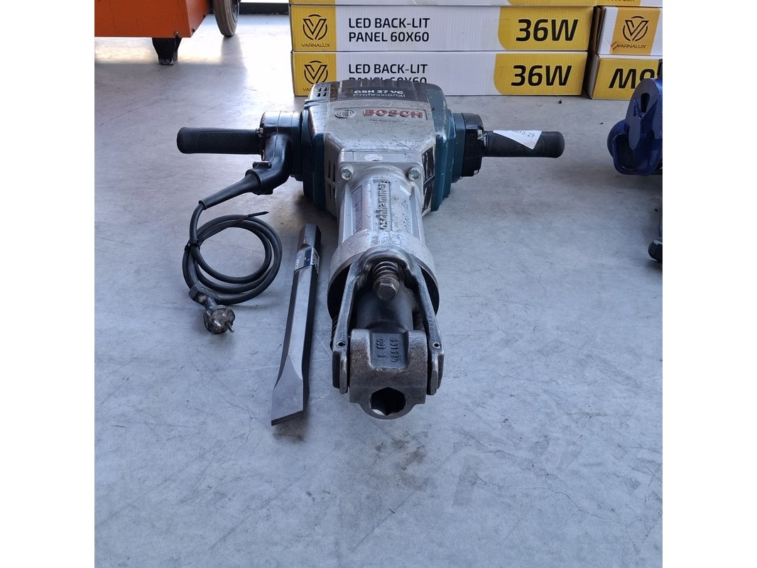 Merk: Bosch Product: Breekhamer / Hakhamer Kleur: Blauw Conditie: Gebruikt Specificaties: Bosch GSH 27 VC Professional – Zware Sloophamer (62 Joule) Krachtigste elektrische breekhamer van Bosch, ontworpen voor het zwaarste sloopwerk in beton en steen. Ondanks de enorme slagkracht zorgt de Vibration Control voor comfortabel en gecontroleerd werken. Specificaties: Slagenergie: 62 Joule (maximale sloopkracht) Vermogen: 2.000 Watt Opname: 28 mm binnenzeskant (HEX) Gewicht: 29,5 kg Vibratiedemping: Slechts 8,5 m/s² Staat: Gebruikt, goedwerkend Extra: Wordt geleverd inclusief 1 nieuwe beitel.