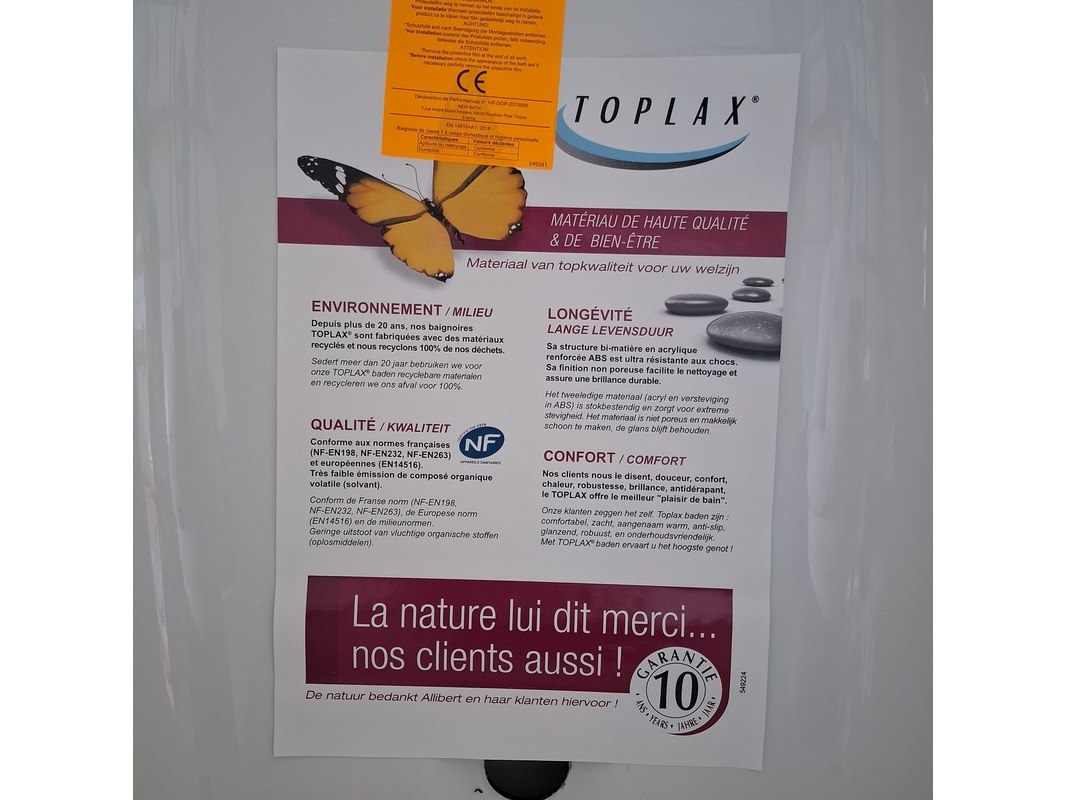Merk: Allibert Product: Bad plaatsbesparend Kleur: Wit Materiaal: Badkuip in Toplax - Zonder glasvezel - Versterkt met ABS Afmeting: 120 x 70 Conditie: Nieuw Specificaties: Badkuip in Toplax® - Zonder glasvezel - Versterkt met ABS - één plaats - Afvoer gecentreerd in de breedte