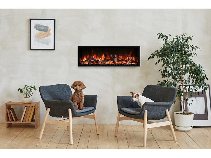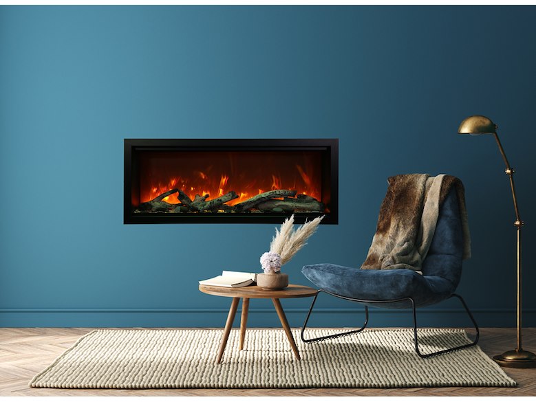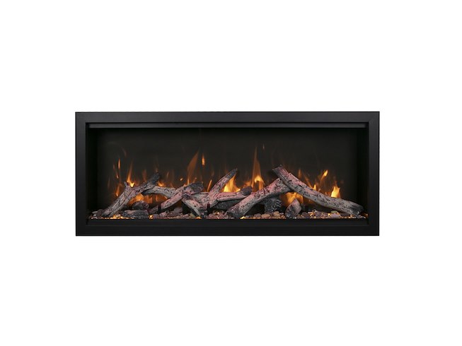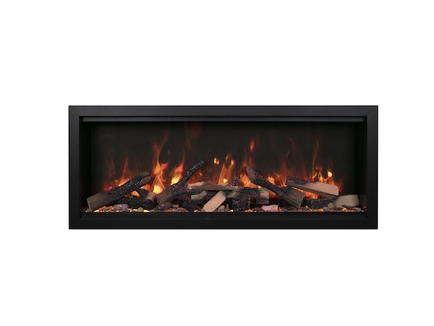 Merk: Amantii Product: Elektrische sfeerhaard Kleur: Zwart Materiaal: Metal Afmeting: Appliance Width 42 1/4” or 107.2 cm Appliance Height 20 1/8 ” or 51 cm Appliance Depth 11 3/4” or 29.74 cm BouwJaar: 2018 Conditie: Nieuw Specificaties: There is more fire viewing area than ever before with Symmetry XT Smart, it boasts the tallest height yet. With edge-to-edge viewing and no unsightly heat vents, this series provides an artistic element above and beyond the basic functions of fire display and heat. The result is clean, contemporary, and innovative. Also features WiFi functionality that offers modern capabilities for a modern fireplace. Presented in red, yellow, and orange flames, the presentation does not disappoint. Symmetry XT-Smart 74”, 88, and 100” all have the option of being hooked up to 240 volts, which increases the heat to 240V, 3000 watts, and 10,230 volts. The glass viewing area is 18” tall with no unsightly venting visible Touchpad controls for convenient control of features with temperature display Ambient Canopy lighting in 13 colors to illuminate decorate media – adds a new dimension Includes Two flame patterns – choose from Amantii’s standard flame style and a new more traditional flame style 2 Stage heater Hardwire ready Thermostat hard-wire ready Trim is required and fireplaces come with Black Surround Flame operates with or without heat. Perfect for zone heating Single remote control for flame, ambient canopy lighting & heater included The heater is located in the inner top of the unit, thus allowing the heat to cascade down over the top of the glass Hidden venting allows for a true clean face appearance Can produce up to 1465W 5000 BTU Heat Flame Presentation – State of the art flame presentation: Vibrant, multi-colored state of the art flame presentation – change from Yellow to Orange to Red with just a click of the remote. Can be used indoors & outdoor including bathroom