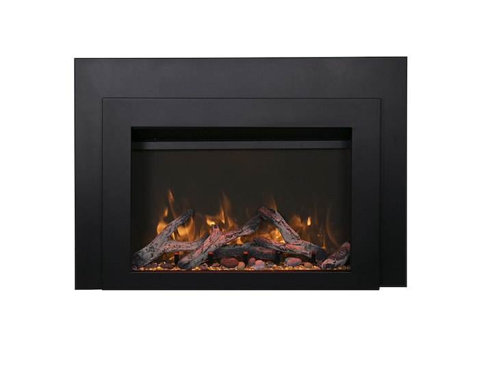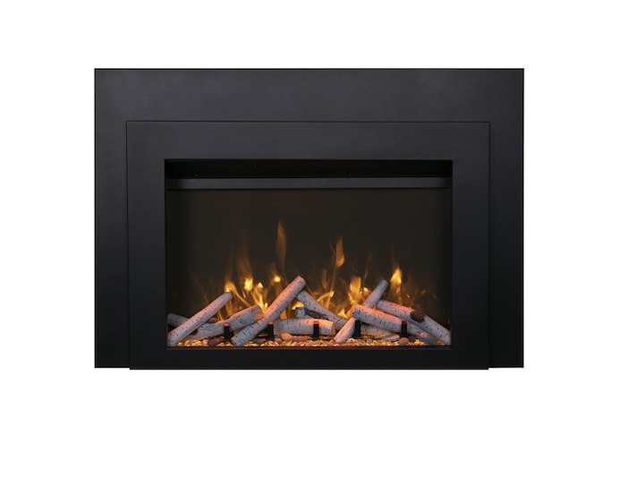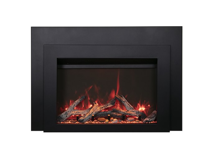 Merk: Amantii Product: Elektrische sfeerhaard Kleur: Zwart Materiaal: Metal Afmeting: Appliance Width 29 3/8” or 74.6 cm Appliance Height 19 ” or 48.2 cm Appliance Depth 8 3/4” or 22.3 cm BouwJaar: 2017 Conditie: Nieuw Specificaties: Revitalize your wood or masonry fireplace with Sierra Flame’s modern Flush Mount INS-FM Electric Insert. Featuring a mesmerizing, life-like gradient flame complemented by a stunning traditional log set, this insert adds both warmth and elegance to your space. Its black steel surround offers a versatile and timeless design that suits any décor. Effortlessly adjust the flame height and intensity using the included remote control for a personalized ambiance. Perfect for zone heating, the INS-FM Electric Insert efficiently warms areas ranging from 400 to 500 square feet. This model comes standard with a sleek black overlay. Great alternative for wood or gas inserts Perfect for renovations or retrofits 2 popular sizes Heat is vented upwards Hardwire ready Stunning ‘Gradient’ Flame Black Steel surround No grills 4 stage front and 4 stages internal backlighting Latest LED light technology Front and rear control for flame and heater included Can produce up to 5000 BTU of heat, enough to heat up to 500 sq feet Plug on the left side Flame operates with or without heat Remote control for flame and heater 4 leveling legs on the underside