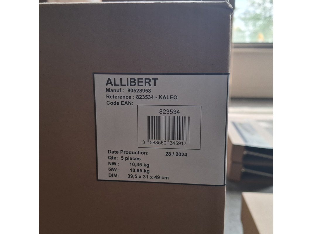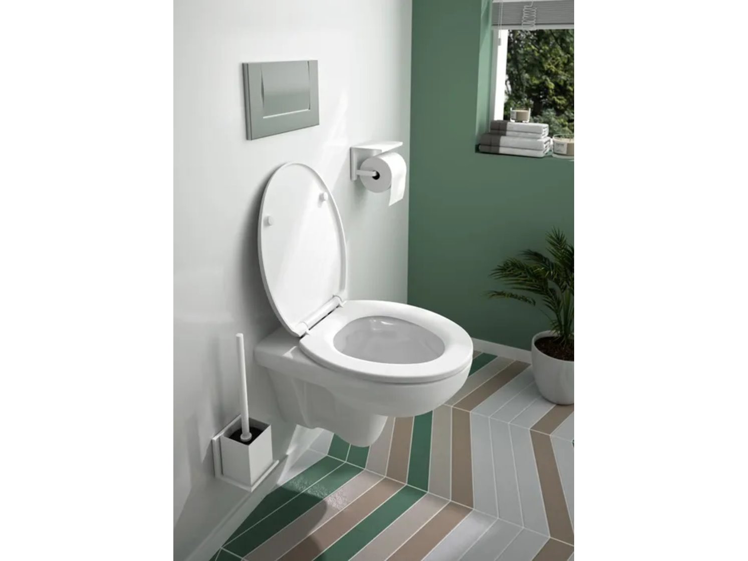 Merk: Allibert Product: WC-zitting Kleur: Wit Materiaal: Thermodur Afmeting: 37,5 x 5,5 x 44,8 cm Conditie: Nieuw Specificaties: WC-zitting in Thermohardende kunststof - Inclusief inox scharnieren