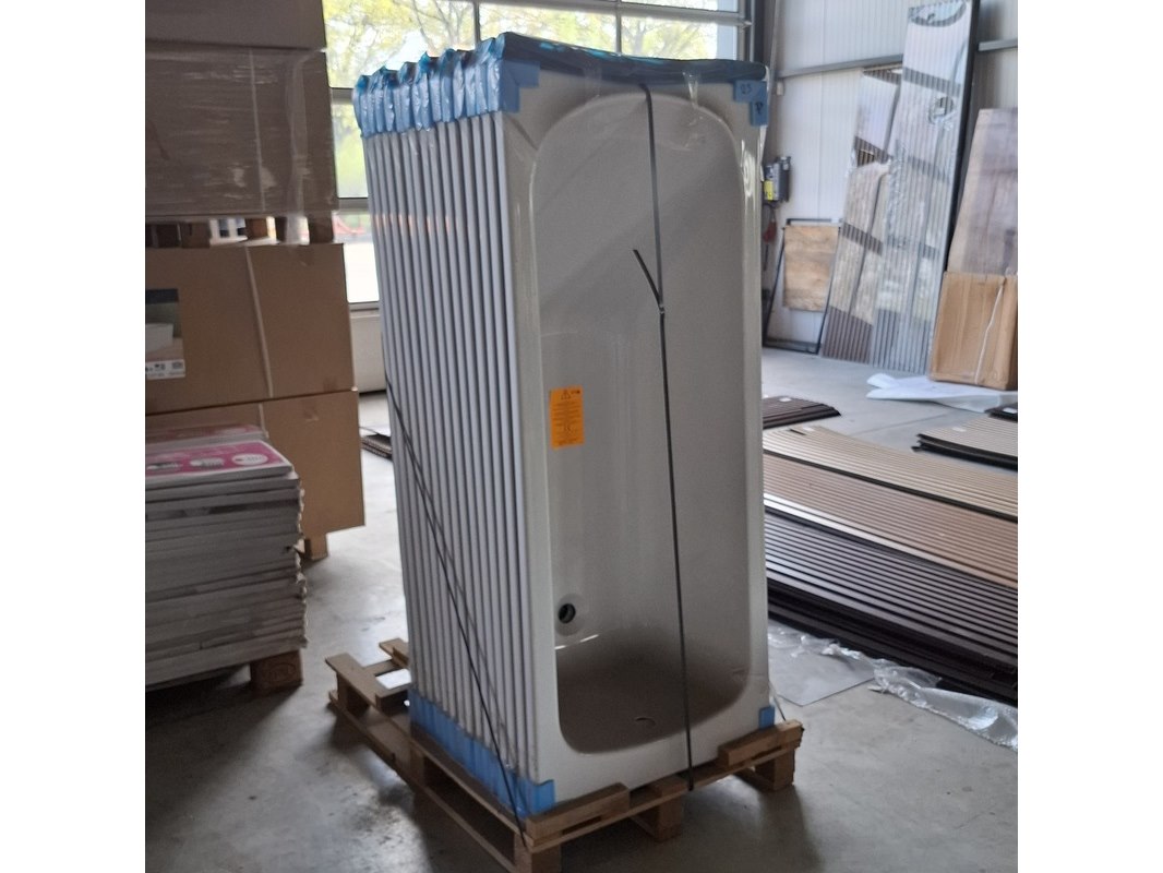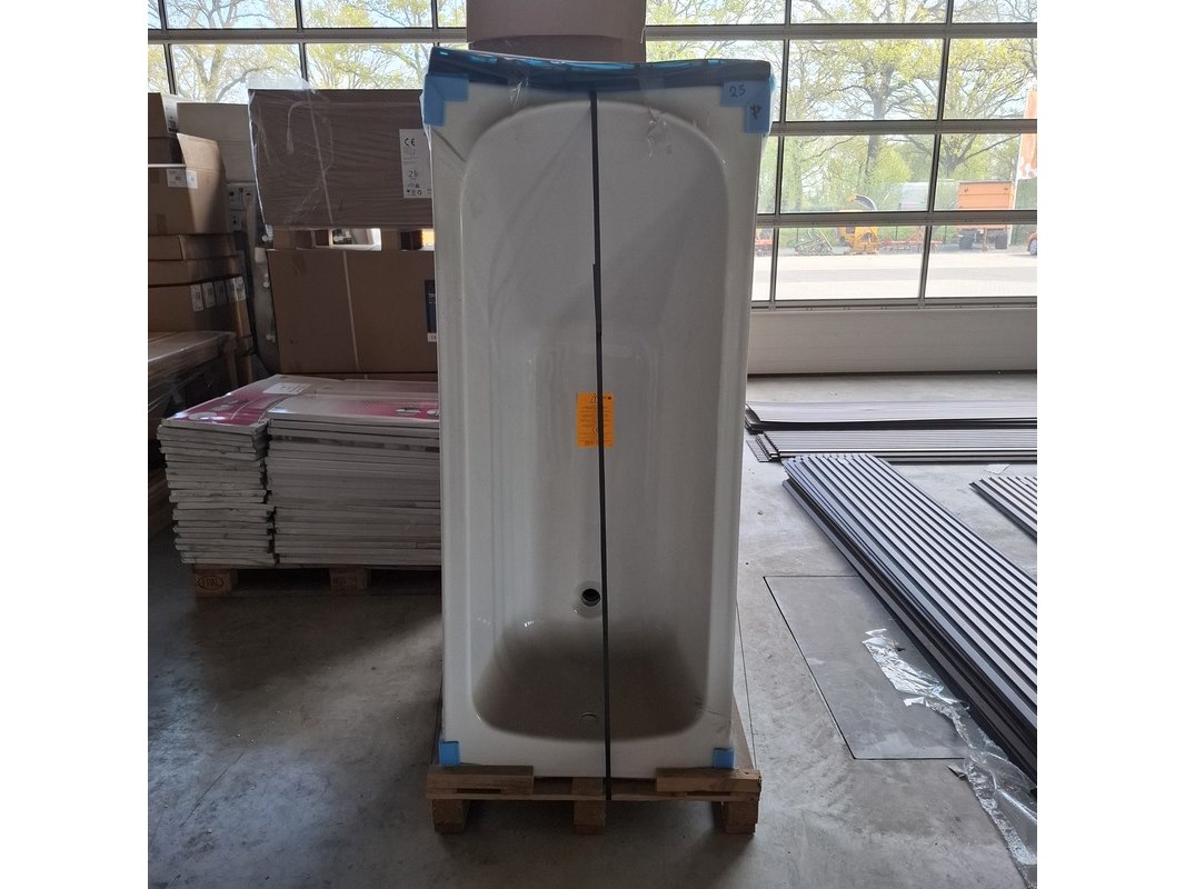 Merk: Allibert Product: Bad Kleur: Wit Materiaal: Acryl Afmeting: 160 x 70 Conditie: Nieuw Specificaties: Badkuip in Acryl - twee plaatsen - twee ruggedeeltes - Afvoer linker hoek -