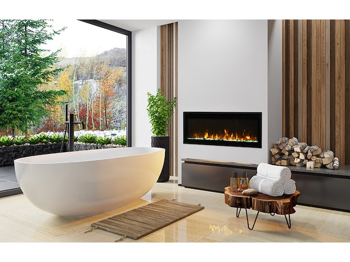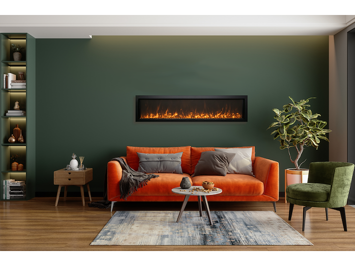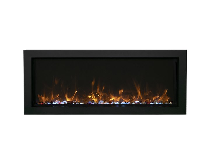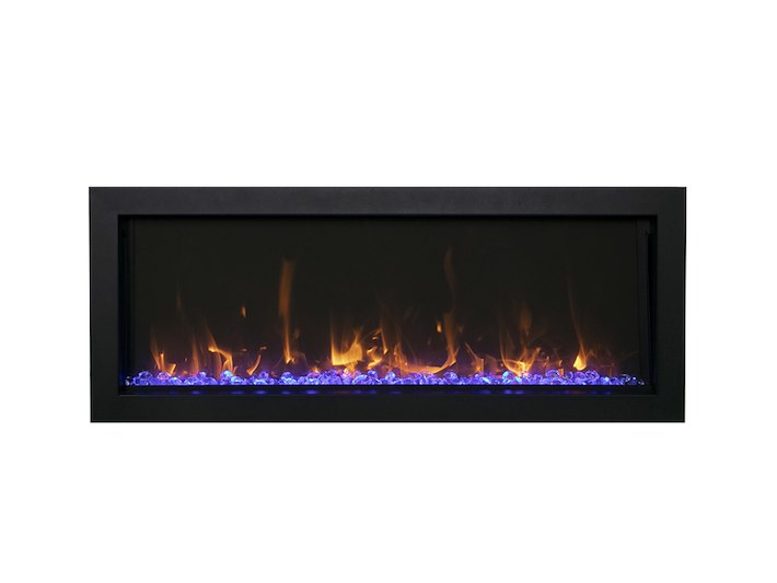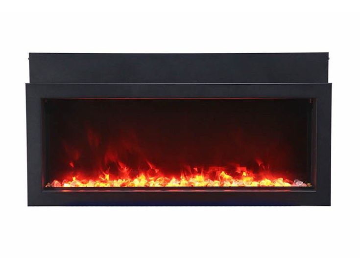 Merk: Amantii Product: Elektrische sfeerhaard Kleur: Zwart Materiaal: Metal Afmeting: Appliance Width 49 1/8” or 124.9 cm Appliance Height 19 7/8” or 50.4 cm Appliance Depth 4 ” or 10.25 cm BouwJaar: 2017 Conditie: Nieuw Specificaties: The Amantii BI EXTRA SLIM is a stylish electric fireplace that makes a stunning addition to any space – indoor or Outdoor. With an opening height of 11-7/8” and available in four sizes, you’ll find an EXTRA SLIM fireplace that is perfect for any space in your home, business, or commercial space. At just 4” in-depth, the BI EXTRA SLIM built-in electric fireplace series is perfectly suited to installations where wall depth is at a premium. The Extra Slim model comes standard with clear decorative media with additional media options available for purchase. All models are rated for either indoor or outdoor use State of the art flame presentation: Vibrant, multi-colored state of the art flame presentation – change from Yellow to Orange to Red with just a click of the remote. 2 Stage heater Hardwire ready Thermostat hard-wire ready Very thin – only 4″ in-depth Flame can operate without heat Single remote control for flame & heater included Choose from 11 colors of canopy and ember bed lighting to illuminate decorative media from below and above Full frame viewing – unit allows for choice of finishing material to come right to the glass Optional black steel surround comes in the box. It is up to you if you want to use it or not. Can produce up to 5000 BTU of heat, enough to heat up to 500 sq feet