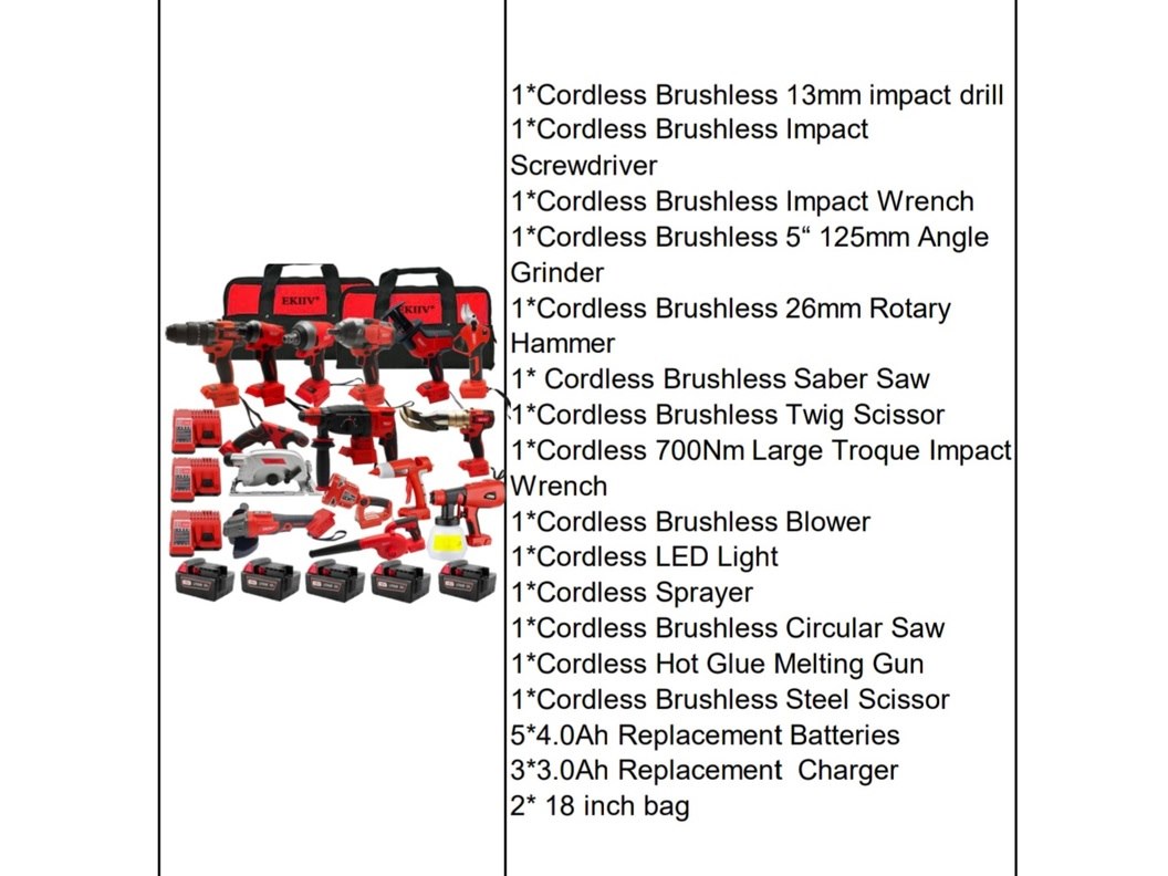 Product: Set gereedschap rood BouwJaar: 2026 Conditie: Nieuw Specificaties: Zeer complete set volgens foto