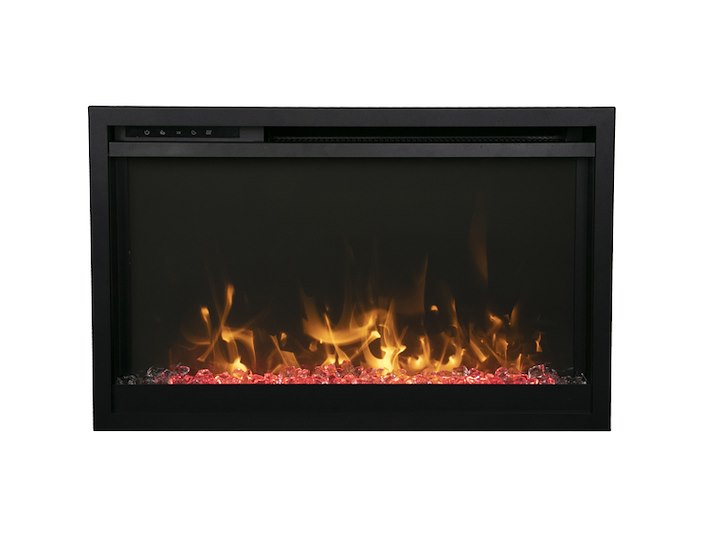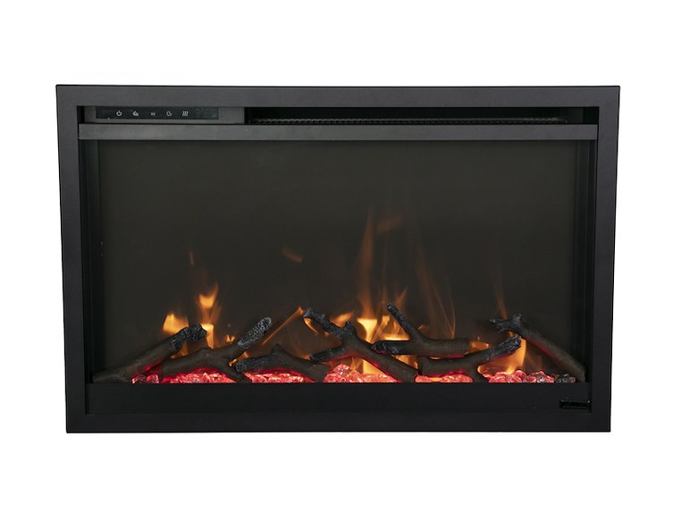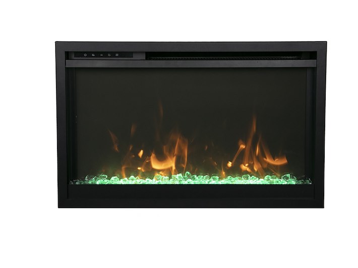 Merk: Remii Product: Elektrische sfeerhaard Kleur: Zwart Materiaal: Metal Afmeting: Appliance Width 25 1/4” or 64.16 cm Appliance Height 16 3/4 ” or 42.58 cm Appliance Depth 4 1/8” or 10.4 cm BouwJaar: 2018 Conditie: Nieuw Specificaties: Amantii Traditional Xtra Slim electric fireplace offers the perfect blend of style and functionality to any room it’s placed in. Defined by its slender depth proportions and streamlined integration into any contemporary domain, the Traditional Xtra Slim is both a familiar emblem of welcome and conversation. An elegant flame display dances across the back of the fireplace, creating movement that is sure to catch your eye. The heat settings can be adjusted with a simple push of a button. During the warmer months, you can set the flames to display without heat – making it perfect to use all year long. The heater is located at the top of the unit allowing heat to cascade down in front of the glass. Modern and sleek in design, this unit can be mounted or recessed into any 2” x 4” wall 5000 BTU’s Unsurpassed, realistic flames can be enjoyed with or without the use of heat, allowing for year-round use Remote App – Total control of your fireplace from the convenience of your mobile device Clean and Seamless in Design: This fireplace features a full-frame viewing area Flame Styles – 11 multi-colors of uplighting that accent from the tray WiFi controls come standard Flame Presentation – yellow, orange, and red. 5 settings in each color, so you can cycle through Smart Heater Control – Auto mode feature allows for the unit to operate under your ideal temperature setting Perfect for any commercial or residential space Operate this fireplace from the comfort of your favorite spot with the included, full feature, remote control 2 Heater settings Low 750W High 1465