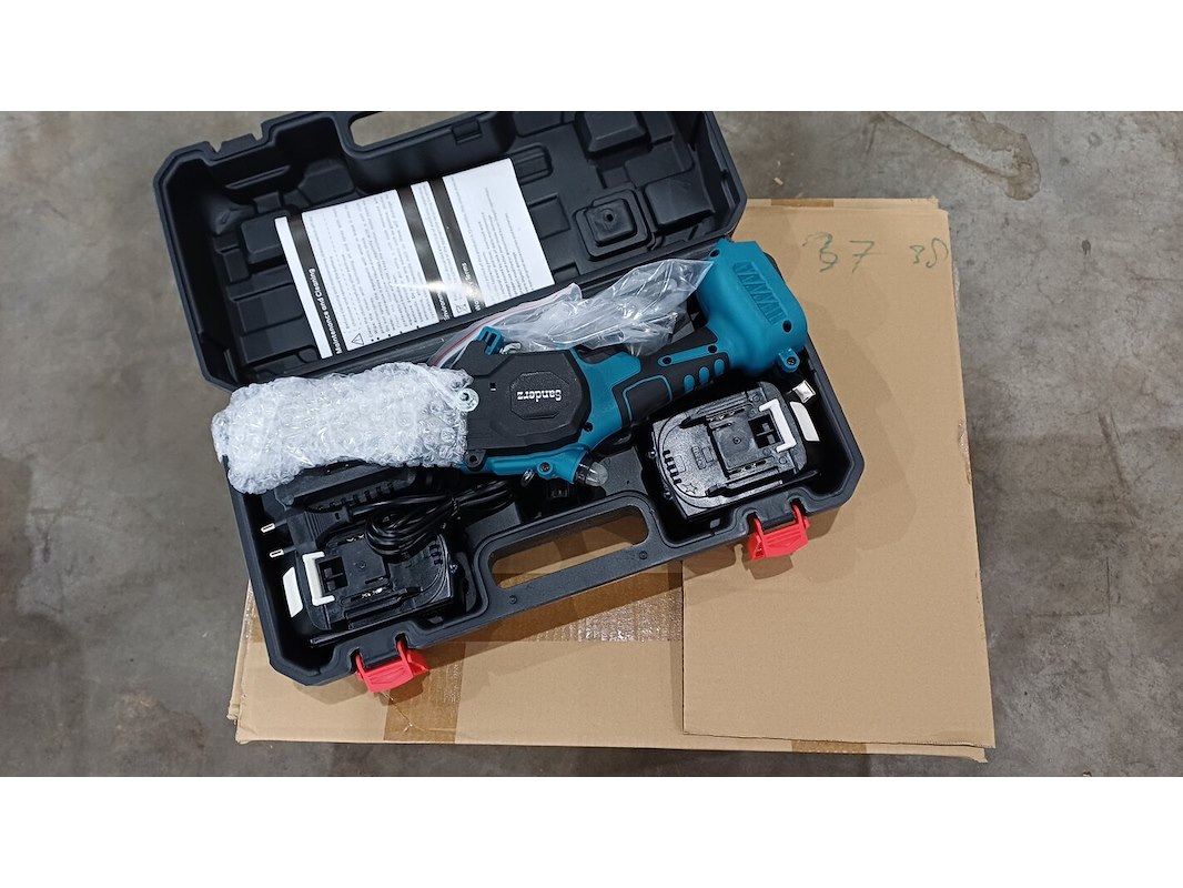 Product: Accu kettingzaag | 6 inch Kleur: Blauw BouwJaar: 2026 Conditie: Nieuw Specificaties: Deze set bestaat uit een body, accu lader en 2 accu's.