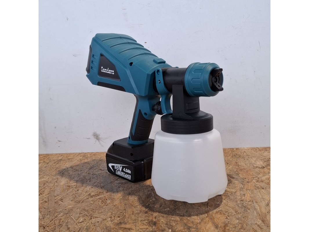 Product: Accu verfspuit Materiaal: Sisal hout velvet Afmeting: 40x60x120 BouwJaar: 2026 Conditie: Nieuw Specificaties: Deze set bestaat uit een body, accu lader en 2 accu's.
