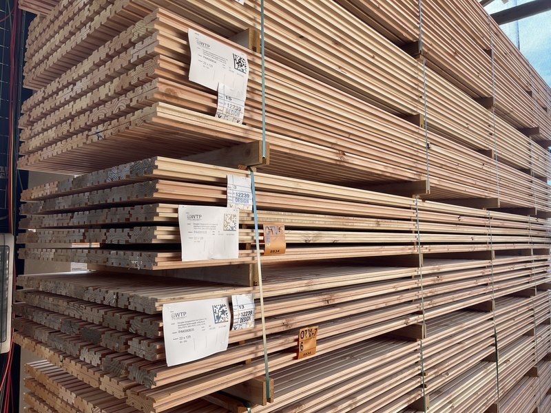 Product: Douglas Design- Triple- Deens profiel Materiaal: Douglas Afmeting: 22x142mm, lengte 500cm Conditie: nieuw
