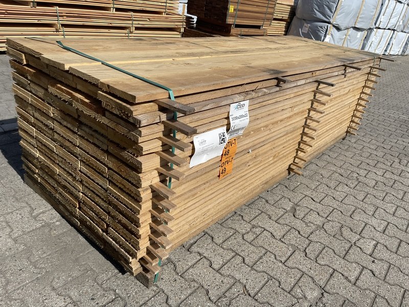 Ca. 70x douglas planken fijnbezaagd, 22x200mm, lengte 300cm