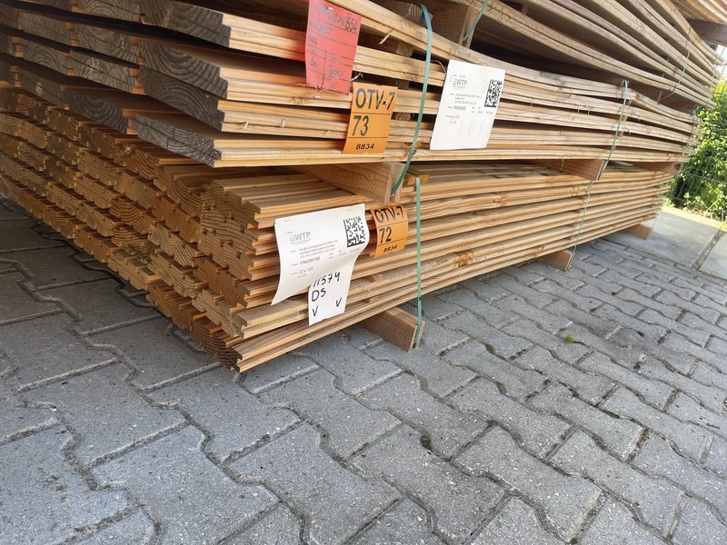 Product: Douglas Design- Triple- Deens profiel Materiaal: Douglas Afmeting: 22x142mm, lengte 300cm Conditie: nieuw