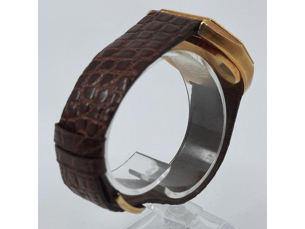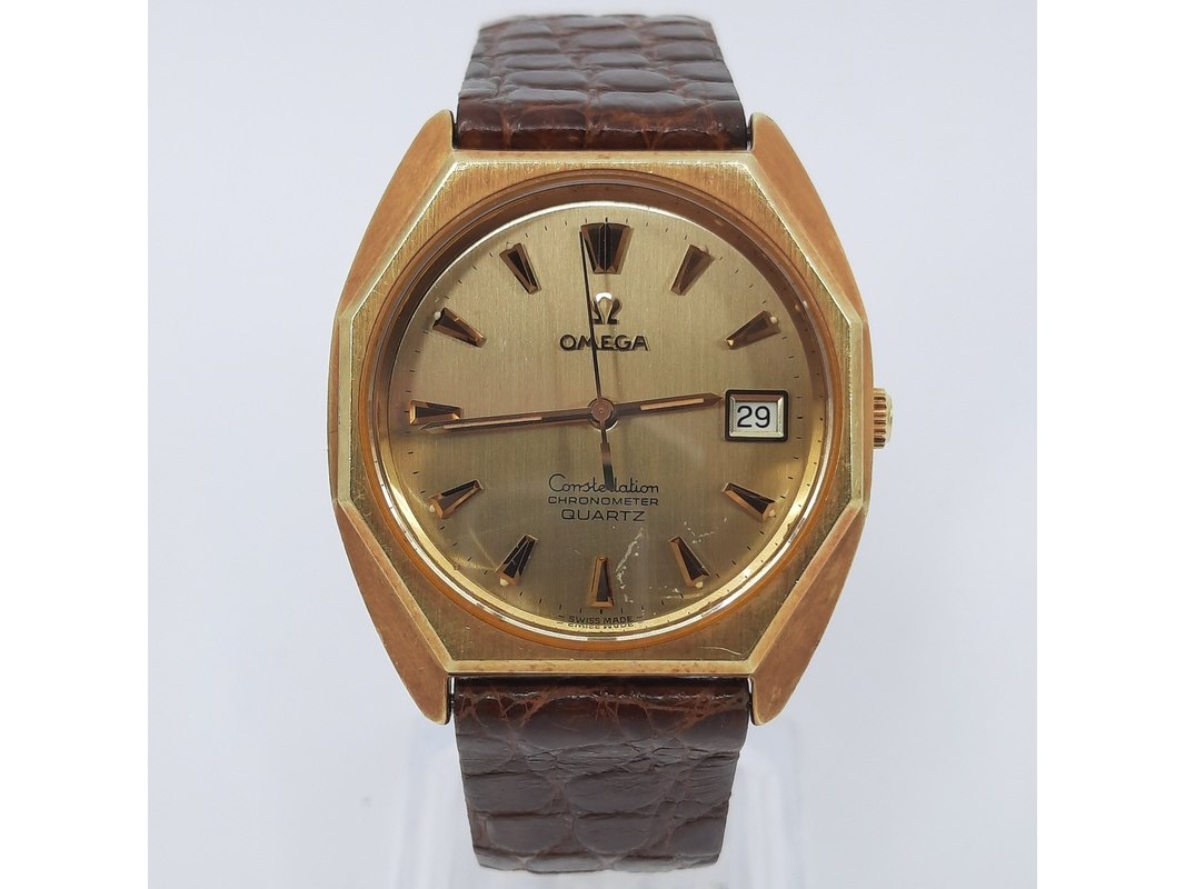 Merk: Omega Product: Heren polshorloge Conditie: Gebruikt Specificaties: Een geelgouden heren polshorloge, Omega Constellation quartz. Cal 1343 (vintage). Vermoedelijk kroon vervangen, behoeft onderhoud. Aan lederen band. Geen doos, geen certificaat.