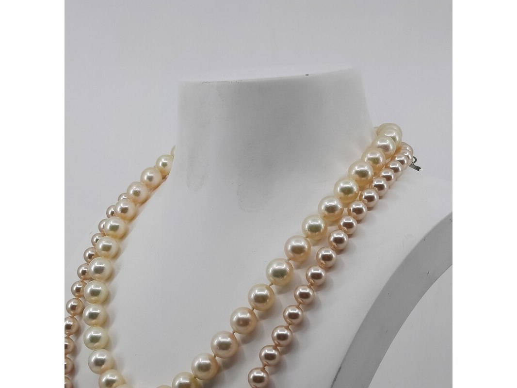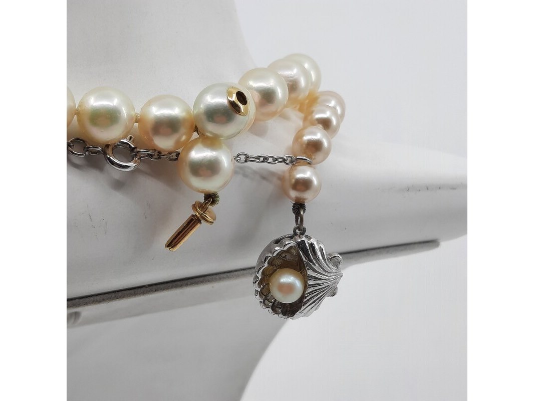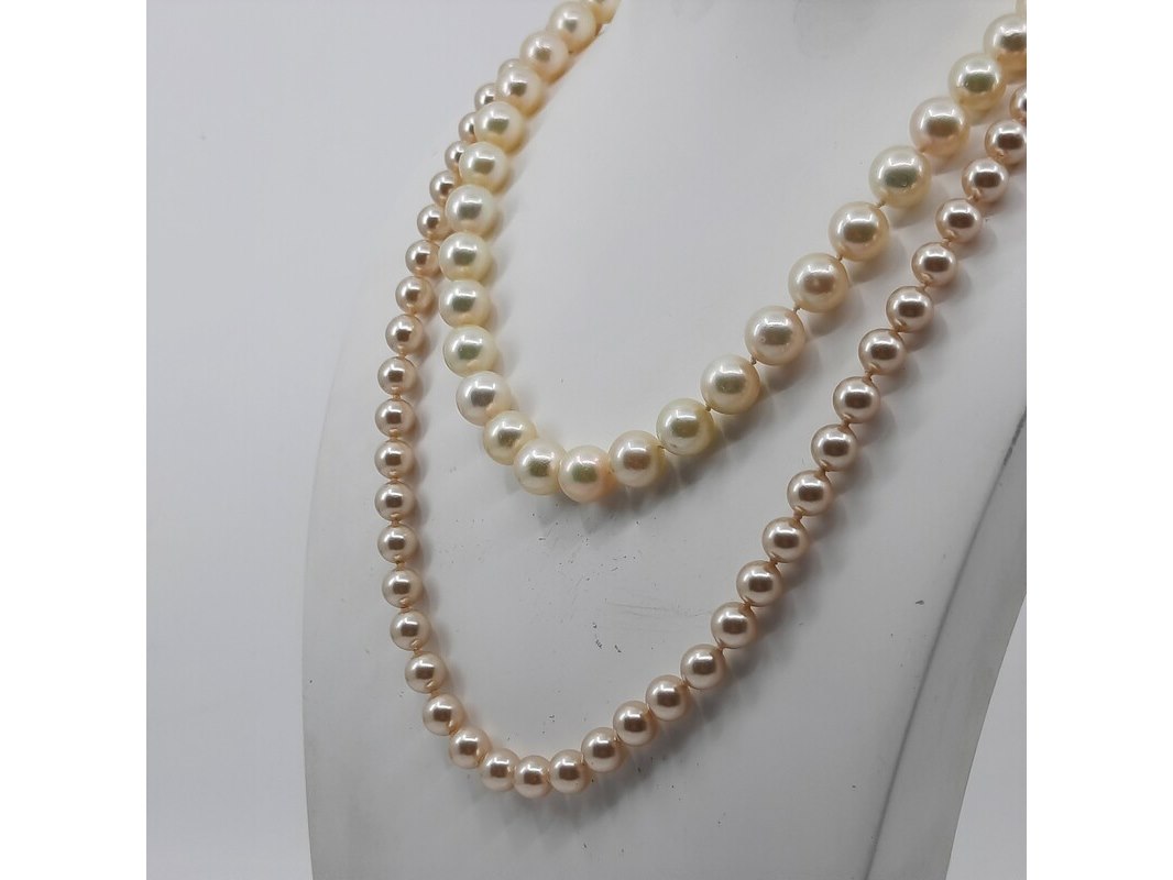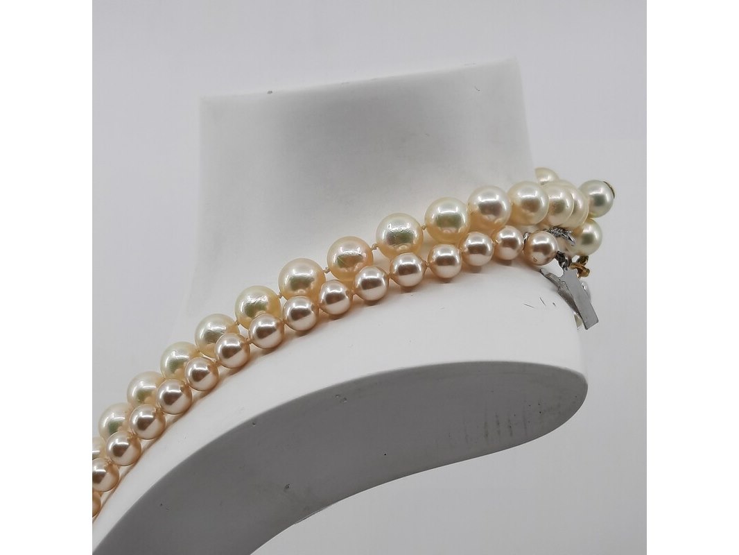 Product: 1x Imitatie parel collier en 1x cultivé parel collier Afmeting: o.a lengte ca. 45 cm. Conditie: gebruikt Specificaties: Een imitatie parel collier met onedel slot en een cultivé parel collier met 18 karaats geelgouden parelslot.