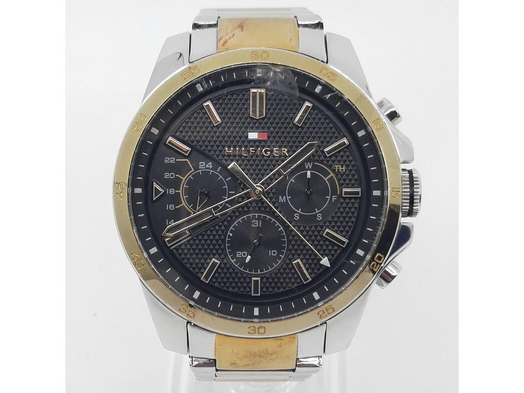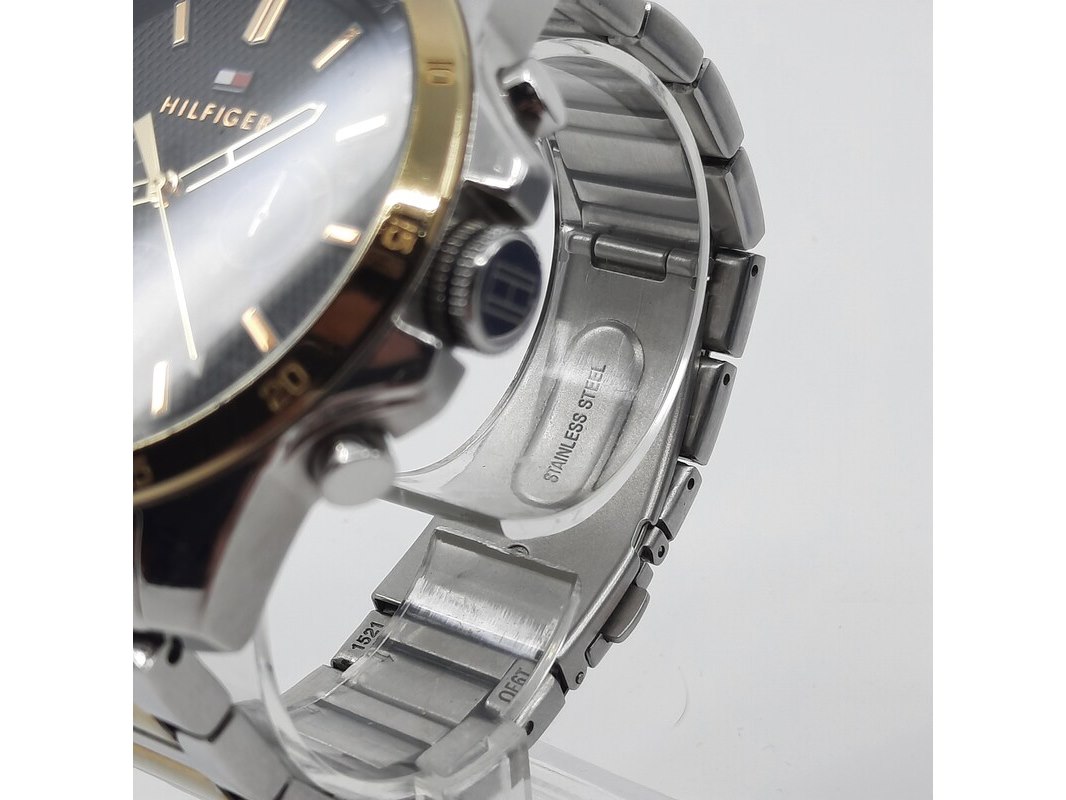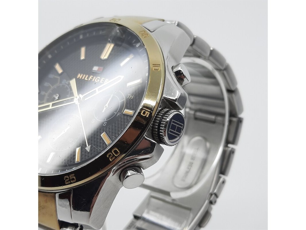 Merk: Tommy Hilfiger Product: Heren polshorloge Conditie: Gebruikt Specificaties: Een onedel polshorloge. Merk Tommy Hilfiger, type Chrono. Inclusief doos, geen certificaat.