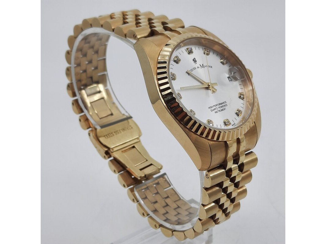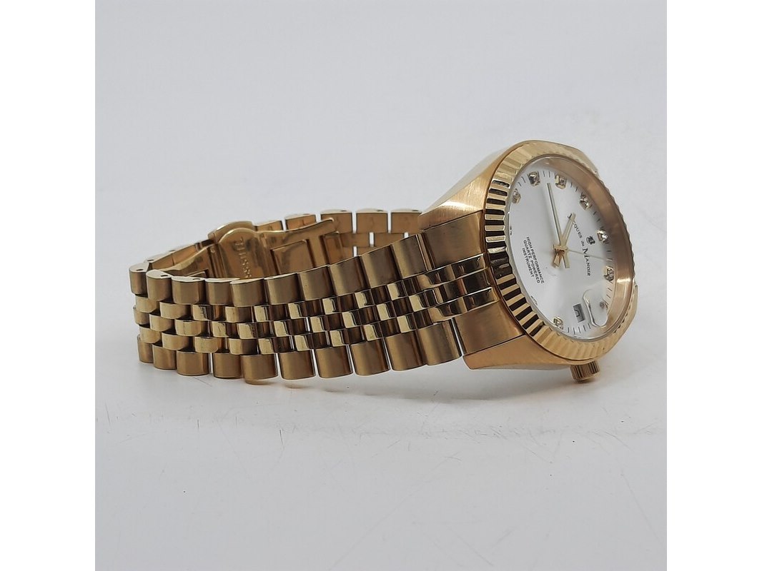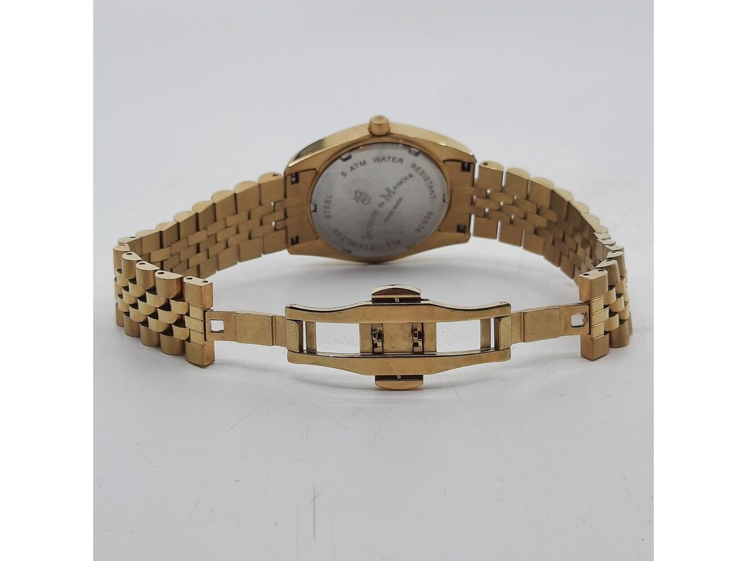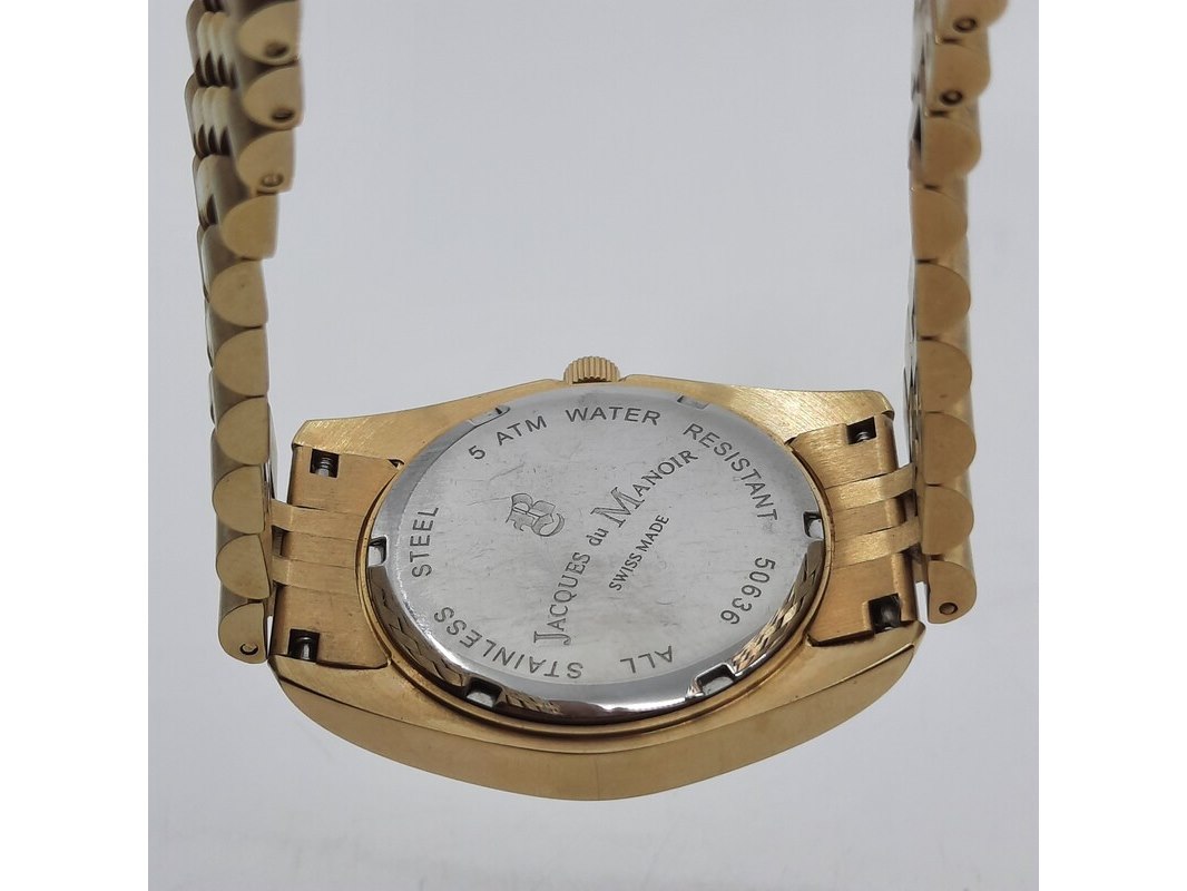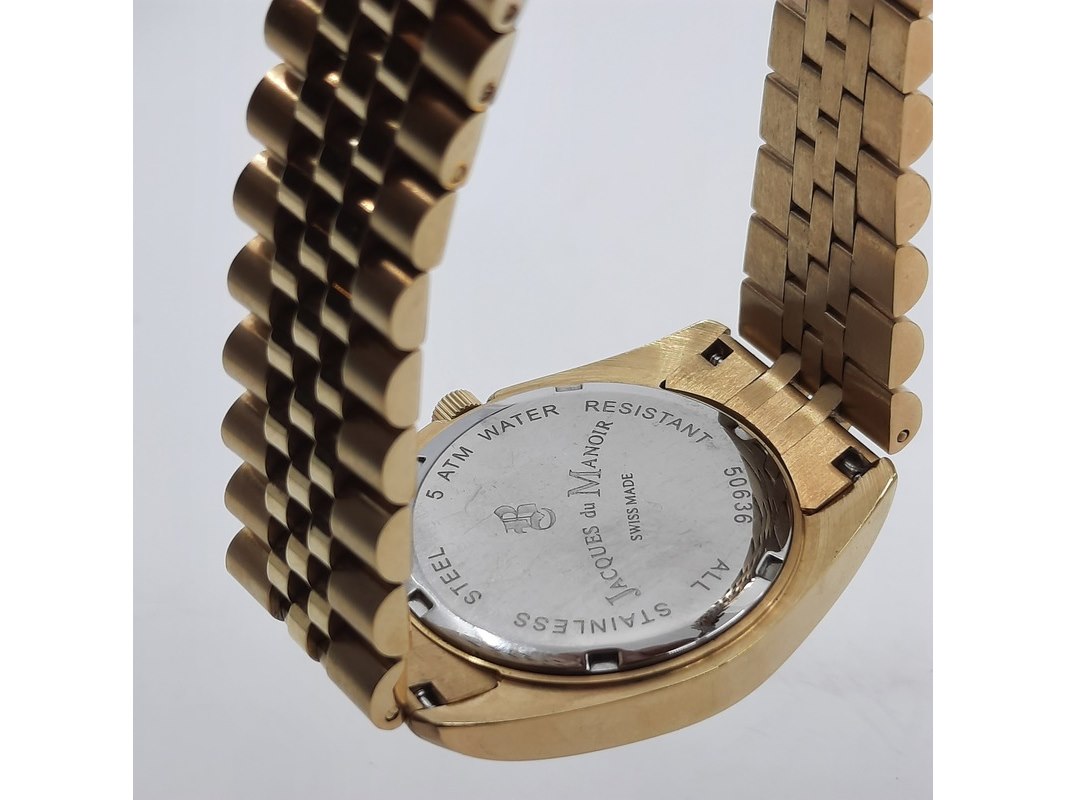Merk: Jaques du Manoir Product: Heren polshorloge Conditie: gebruikt Specificaties: Een onedel polshorloge. Merk Jaques du Manoir, type quartz. Wijzerplaat bezet met simili. Geen doos en geen certificaat.