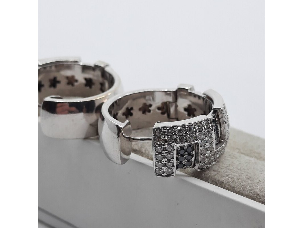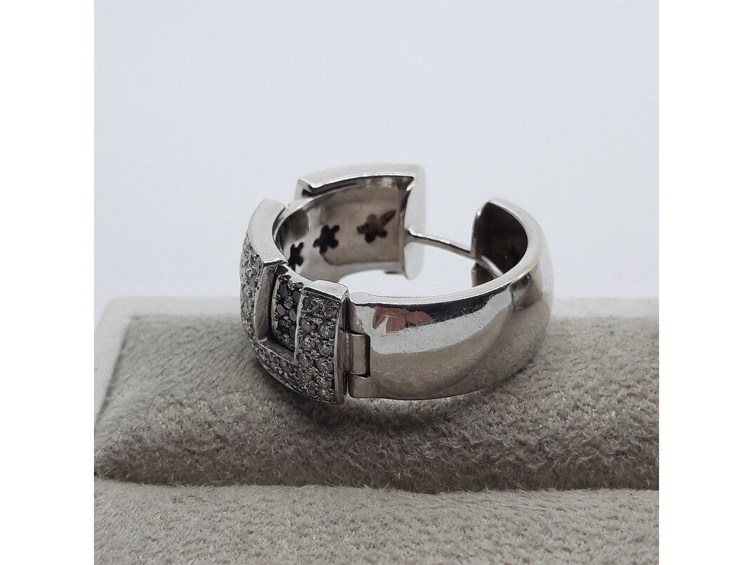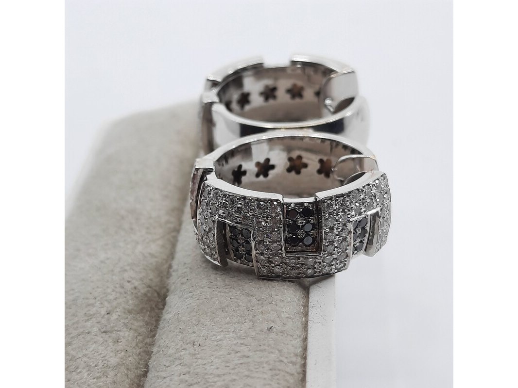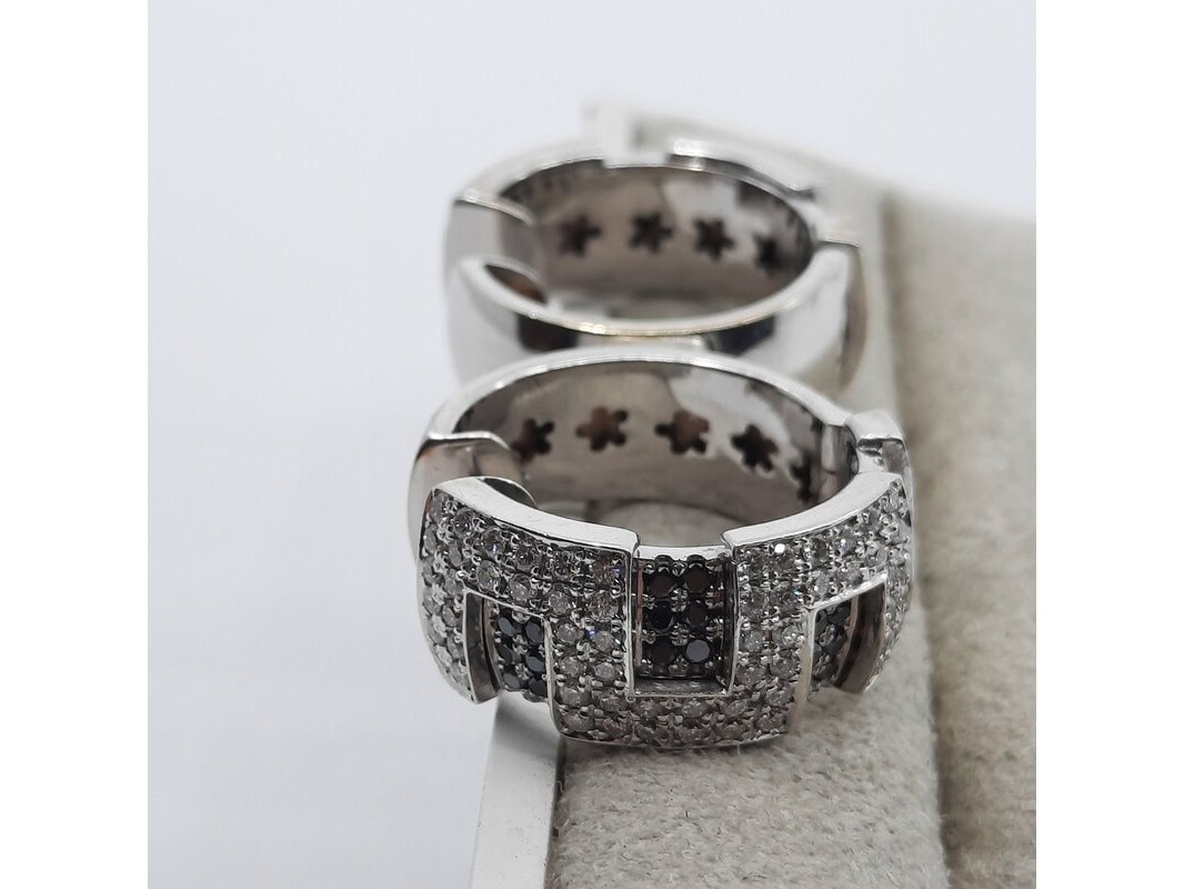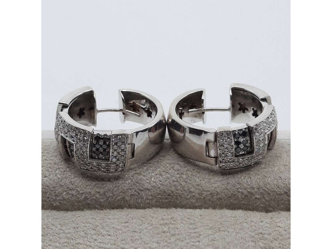Product: Paar creolen, 18 karaats Conditie: Gebruikt Specificaties: Een paar 18 karaats witgouden creolen met ca. 1,5 kt. kleurloze en ca. 0,45 kt. zwarte diamant. Gewicht samen ca. 25,45 gram
