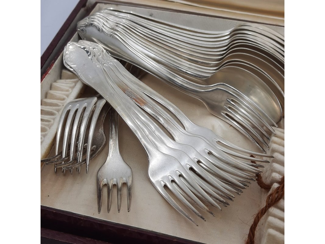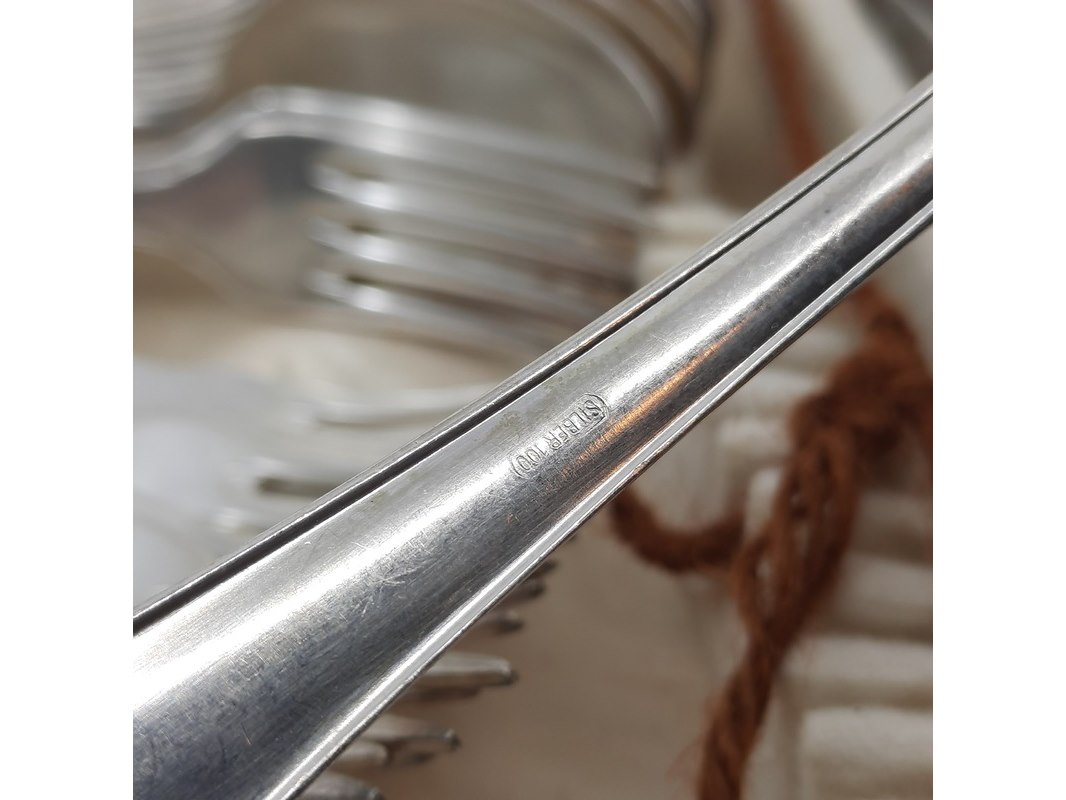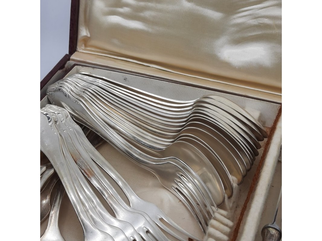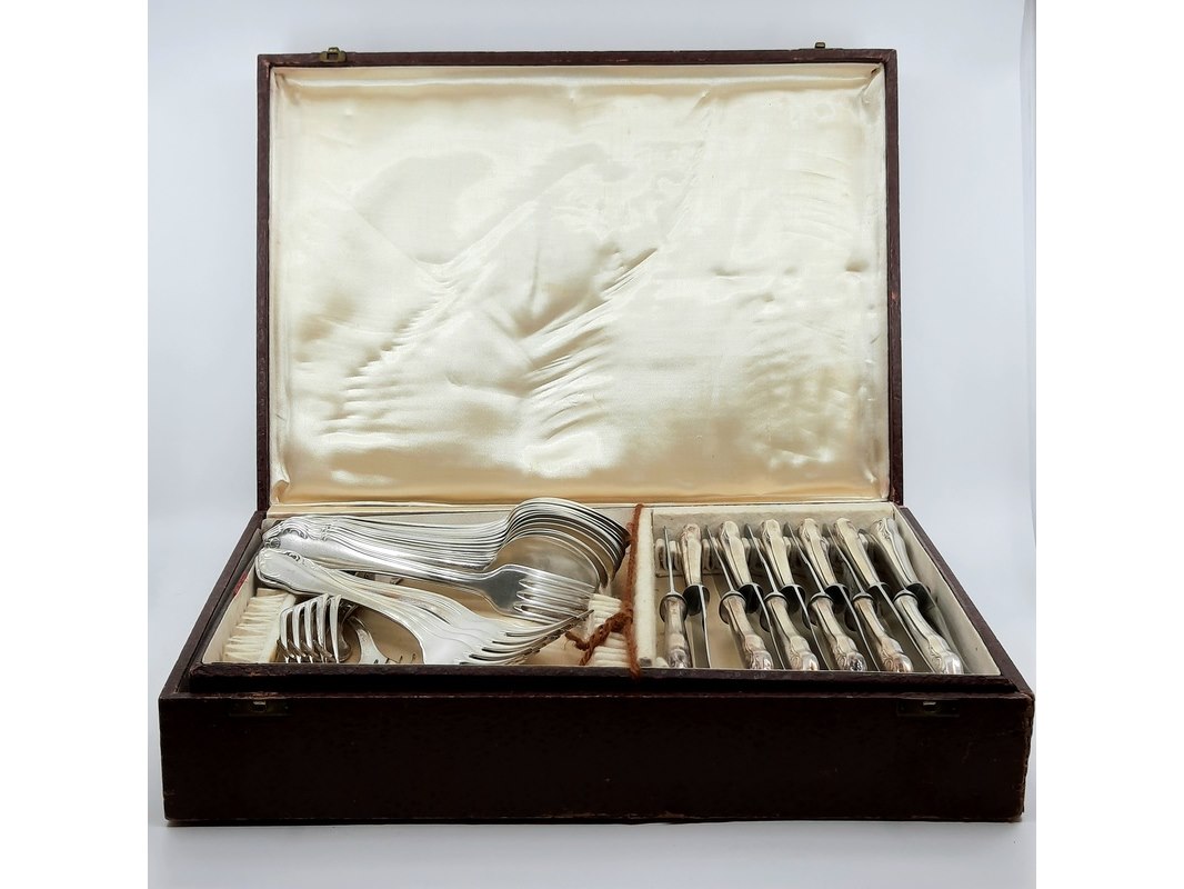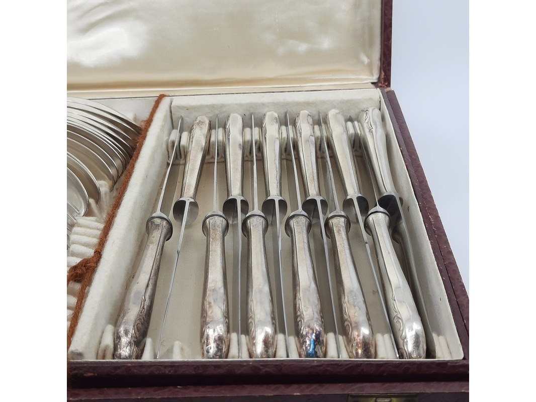 Product: Casette met verzilverd bestek Conditie: Gebruikt Specificaties: Verzilverd bestek. Duitse makelij. In doos, deksel defect. Doos beschadigd