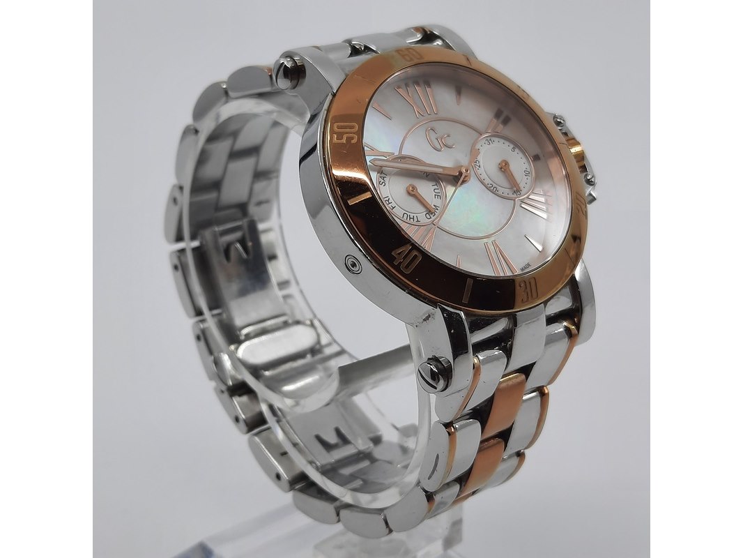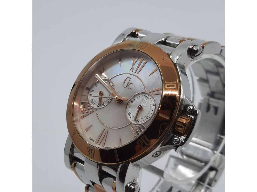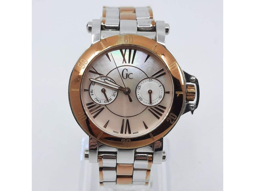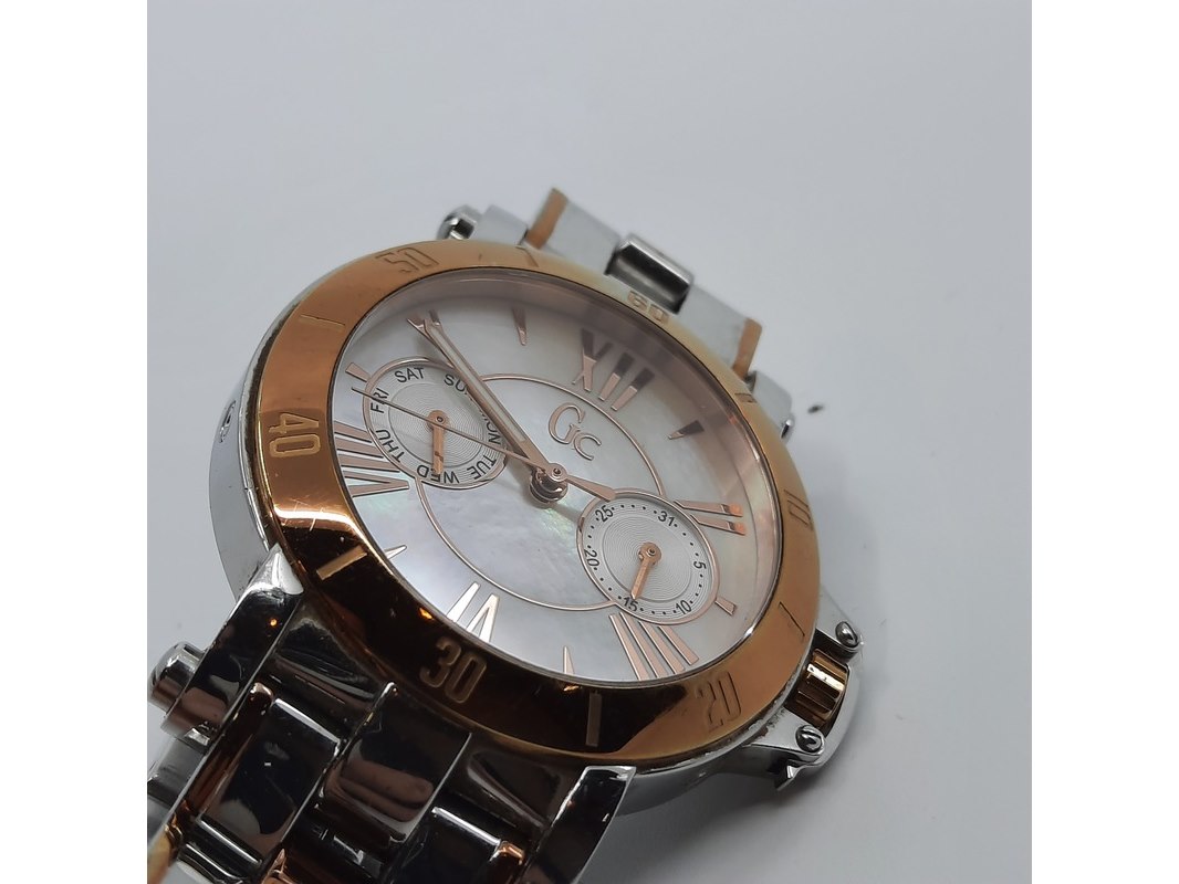 Merk: Guess Product: Dames polshorloge Conditie: Gebruikt Specificaties: Een onedel polshorloge. Merk Gc Guess, met parelmoer wijzerplaat. In doos, geen certificaat.