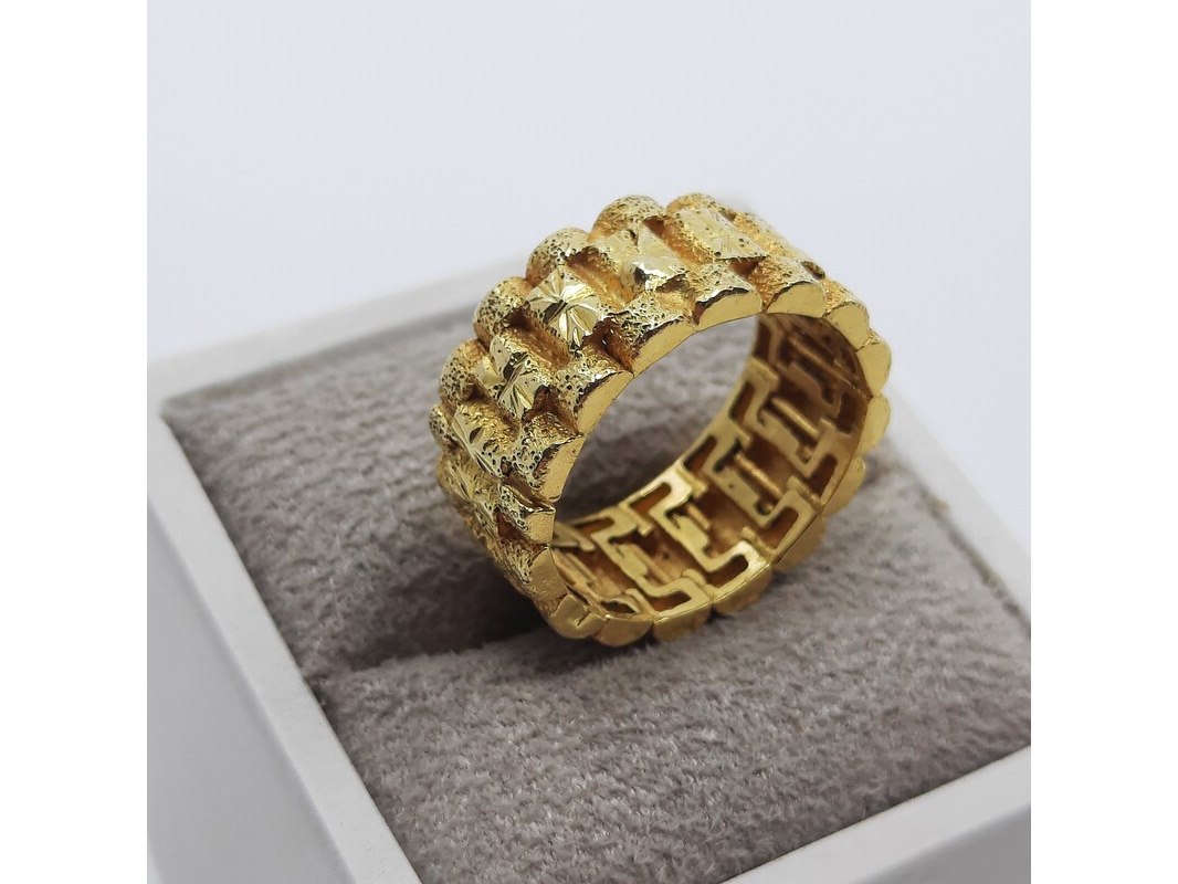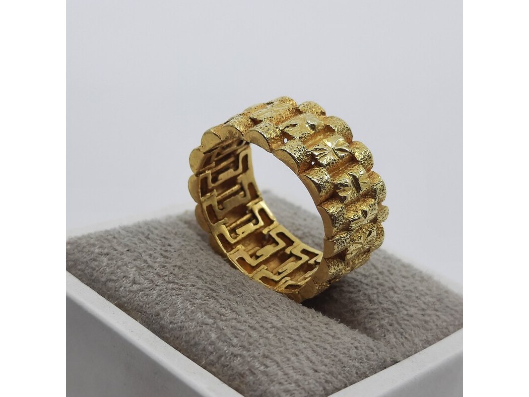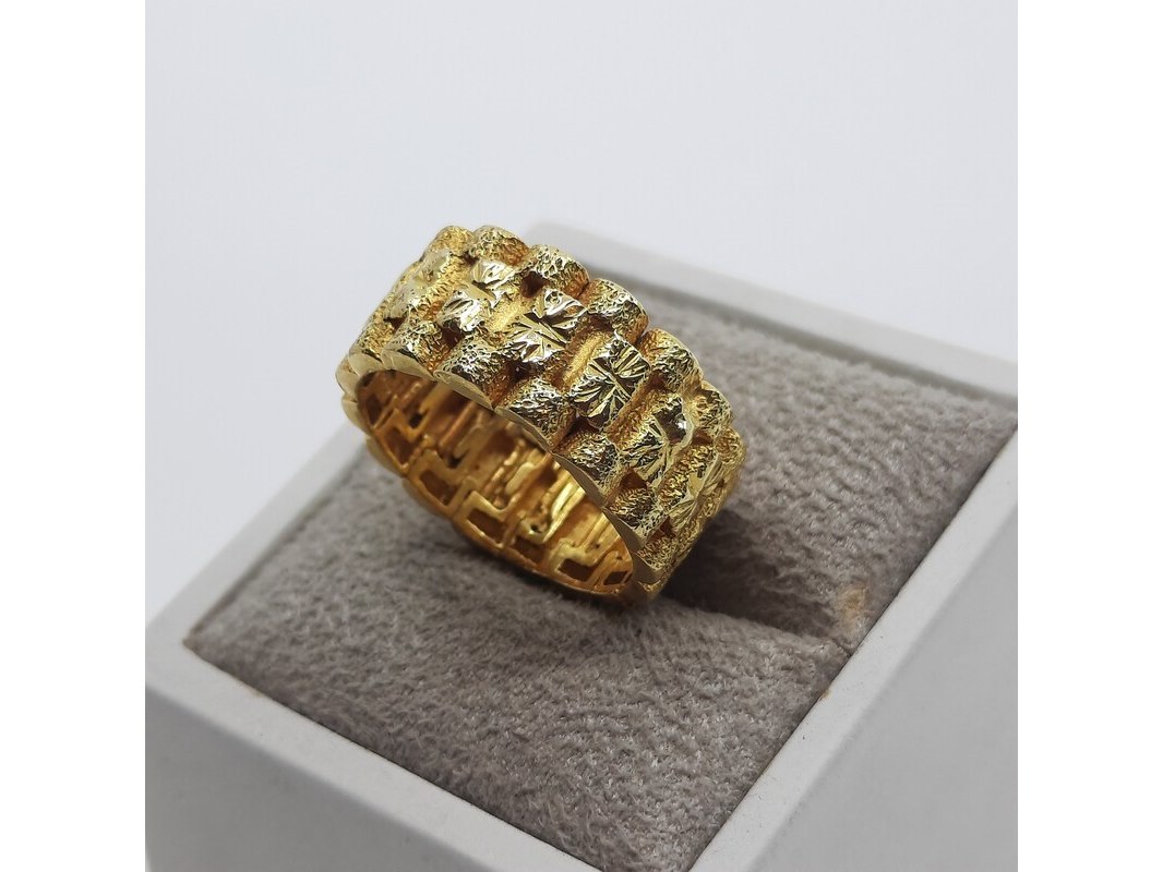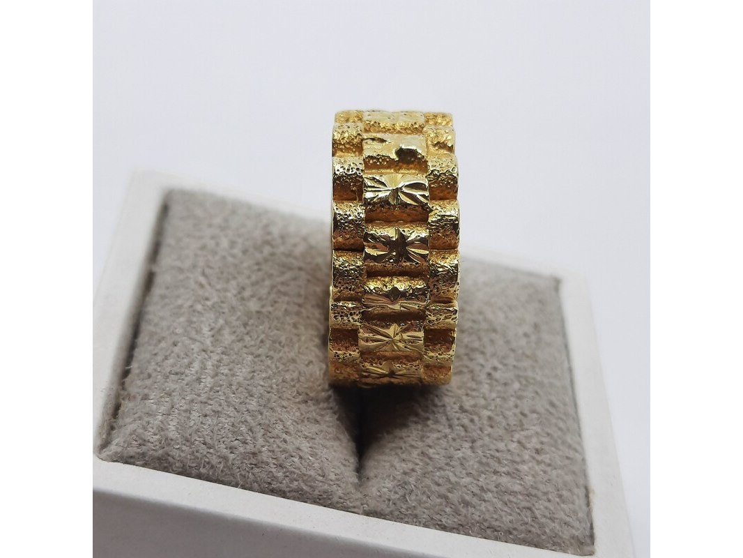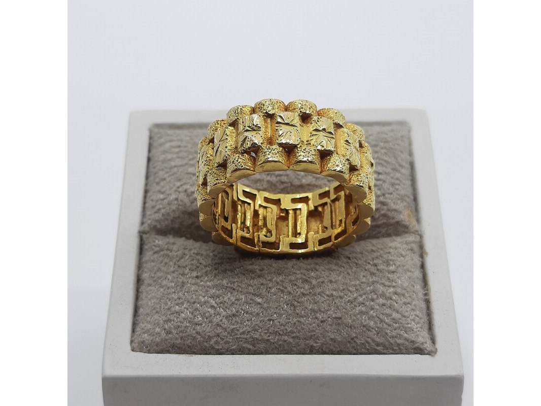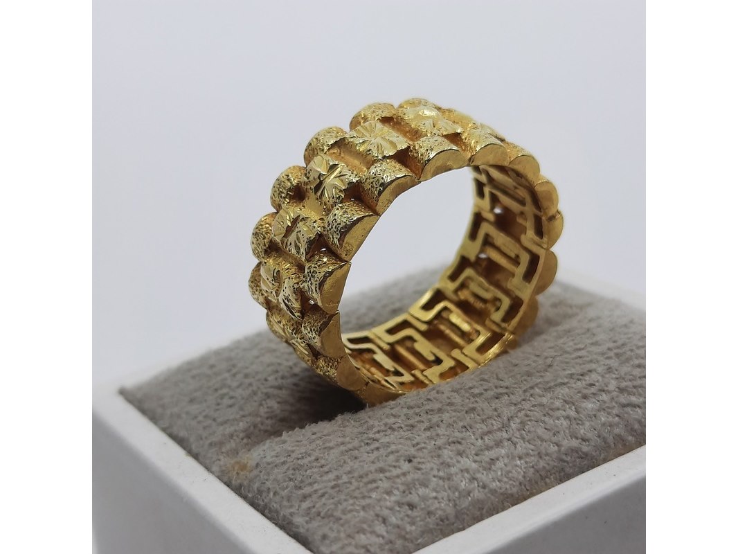 Product: Ring, 18 karaats Afmeting: Ringmaat ca. 16 (52) Conditie: Gebruikt Specificaties: Een 18 karaats geelgouden ring. Gewicht ca. 8,04 gram