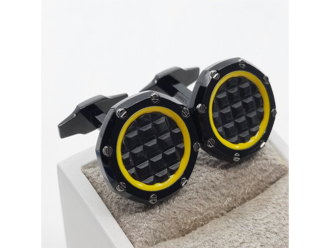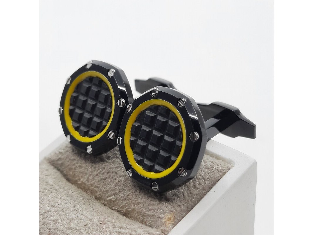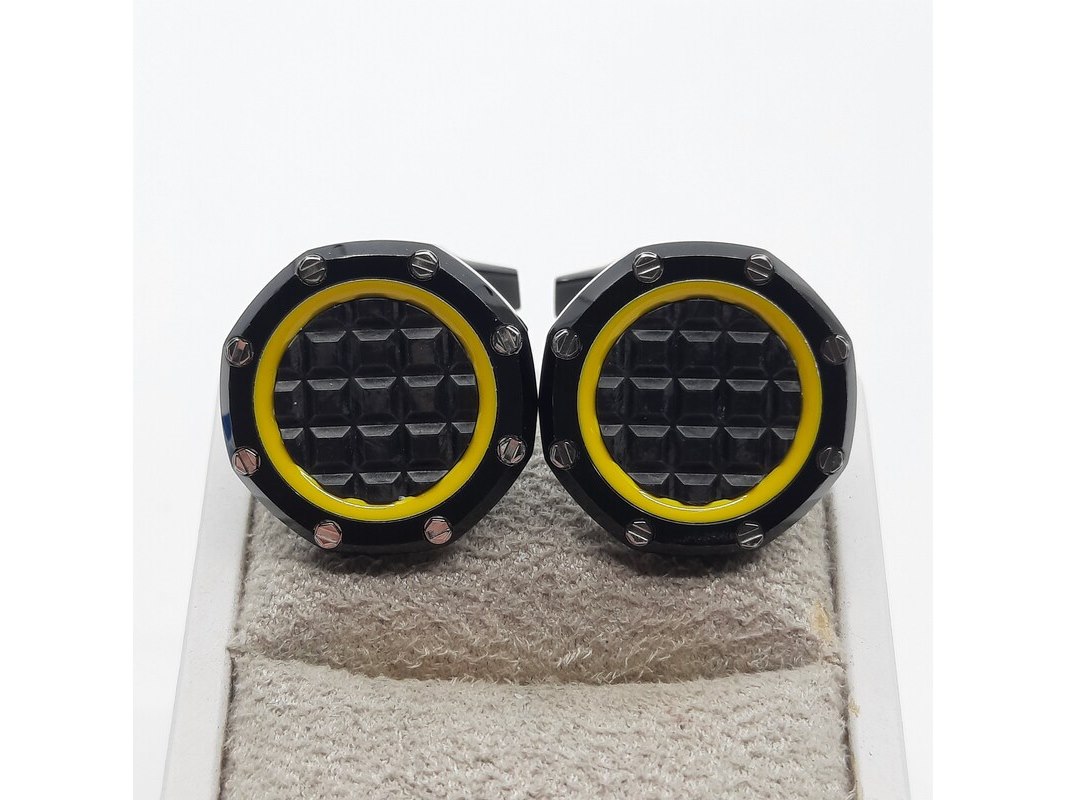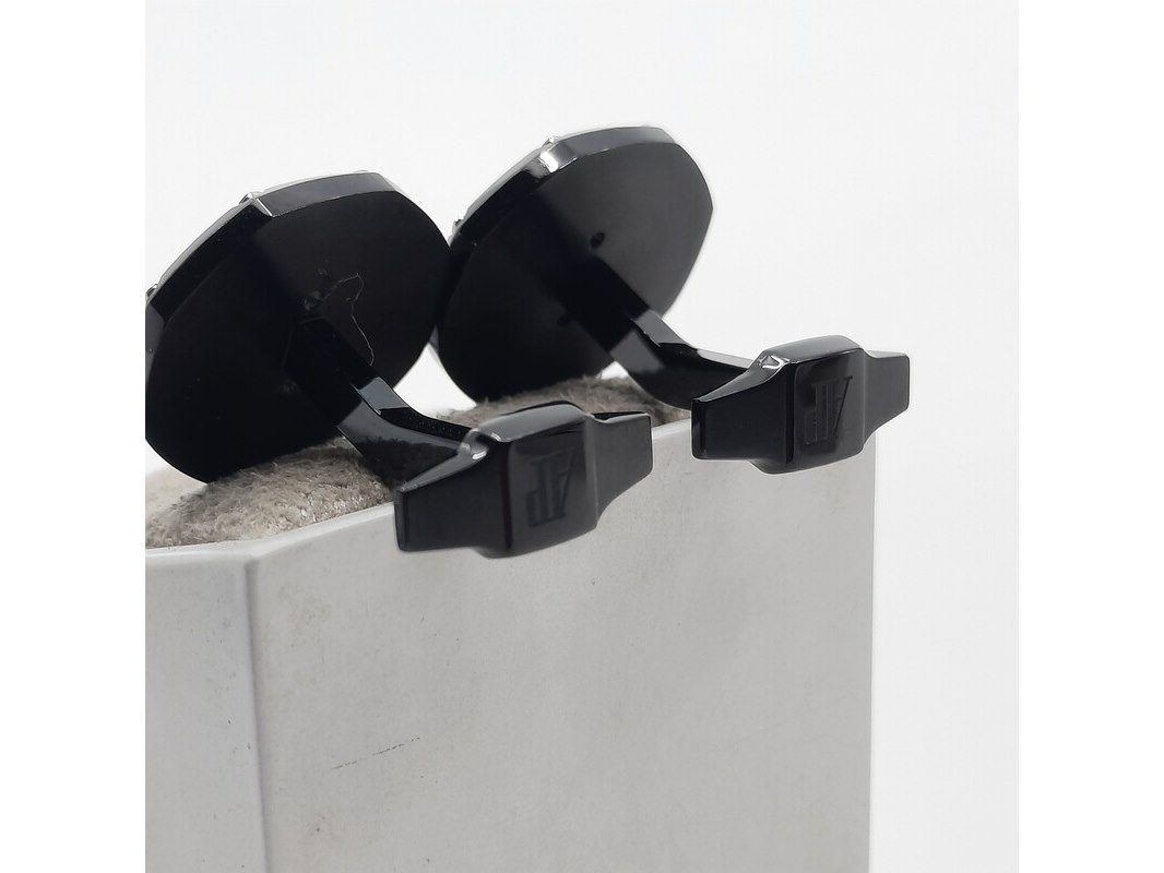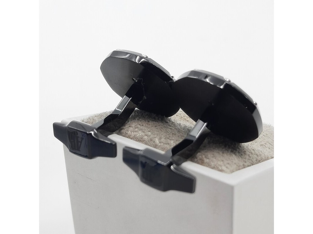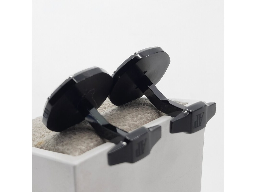 Merk: Audemars Piguet Product: Manchetknoop Conditie: Gebruikt Specificaties: Een paar zwart stalen manchetknopen. Merk Audemars Piguet, in doos.