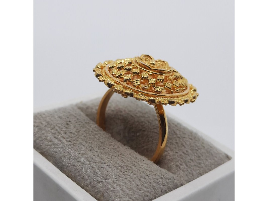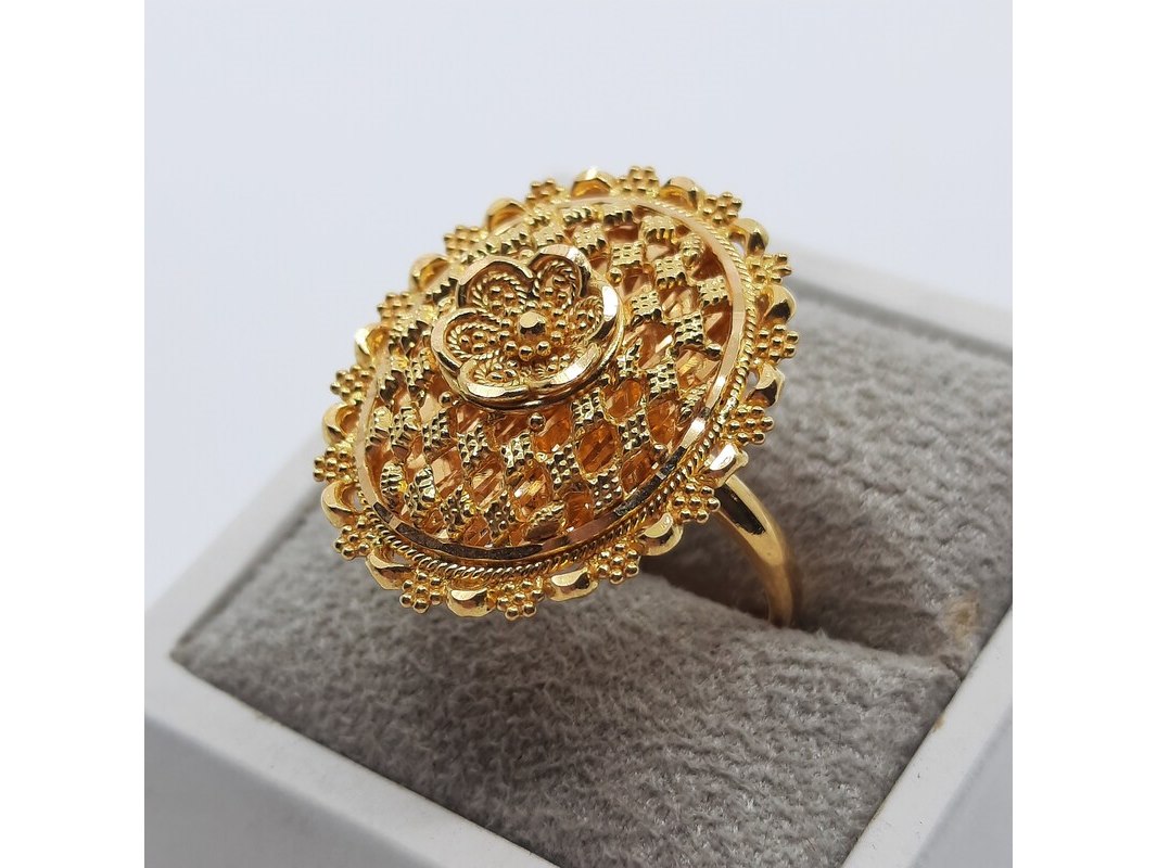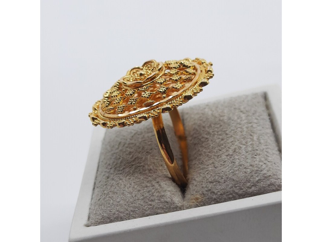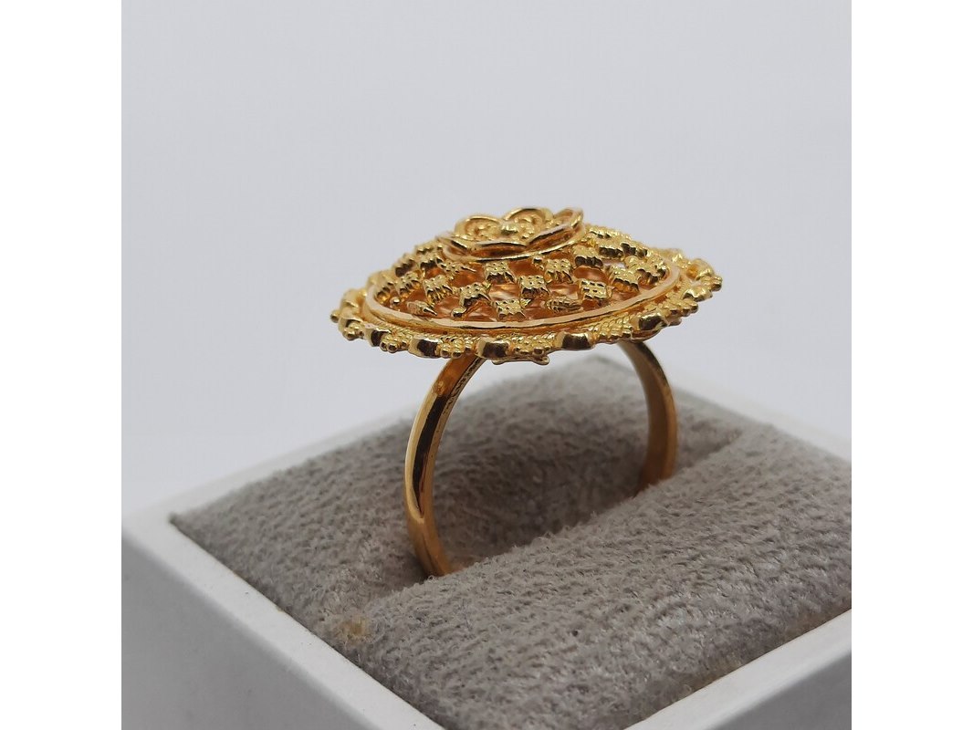 Product: Ring, 22 karaats Afmeting: Ringmaat ca. 17 (55) Conditie: Gebruikt Specificaties: Een 22 karaats geelgouden filigrein ring. Gewicht ca. 7,11 gram