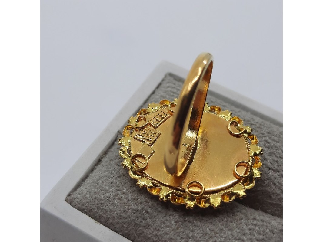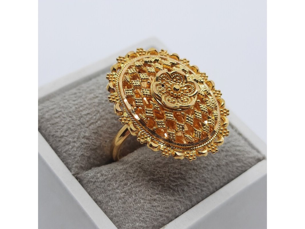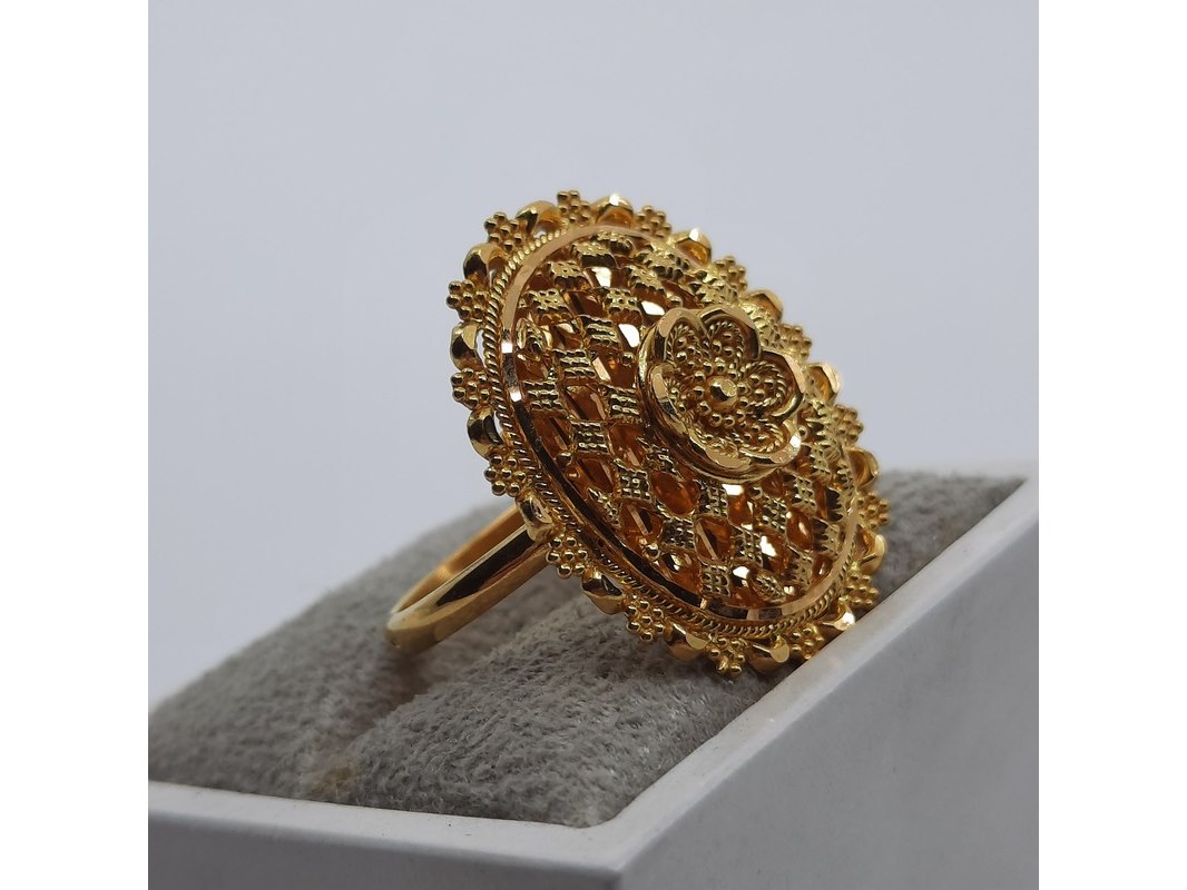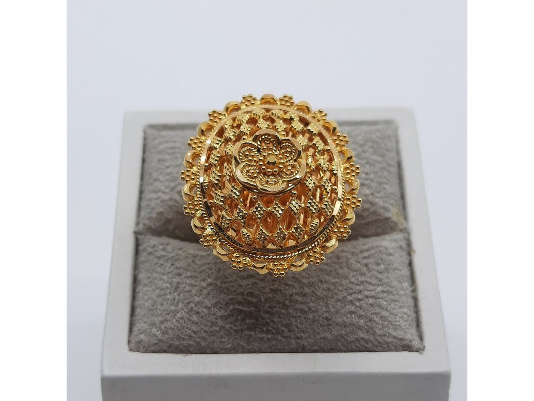 Product: Ring, 22 karaats Afmeting: Ringmaat ca. 17 (55) Conditie: Gebruikt Specificaties: Een 22 karaats geelgouden filigrein ring. Gewicht ca. 7,11 gram