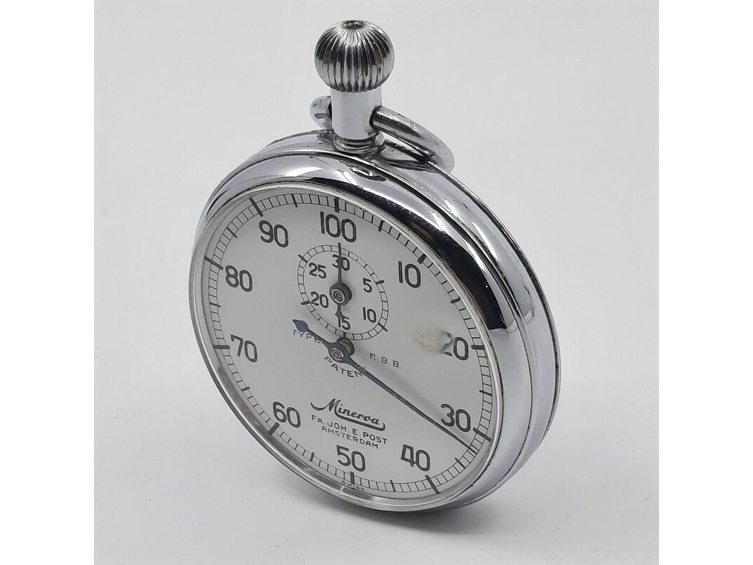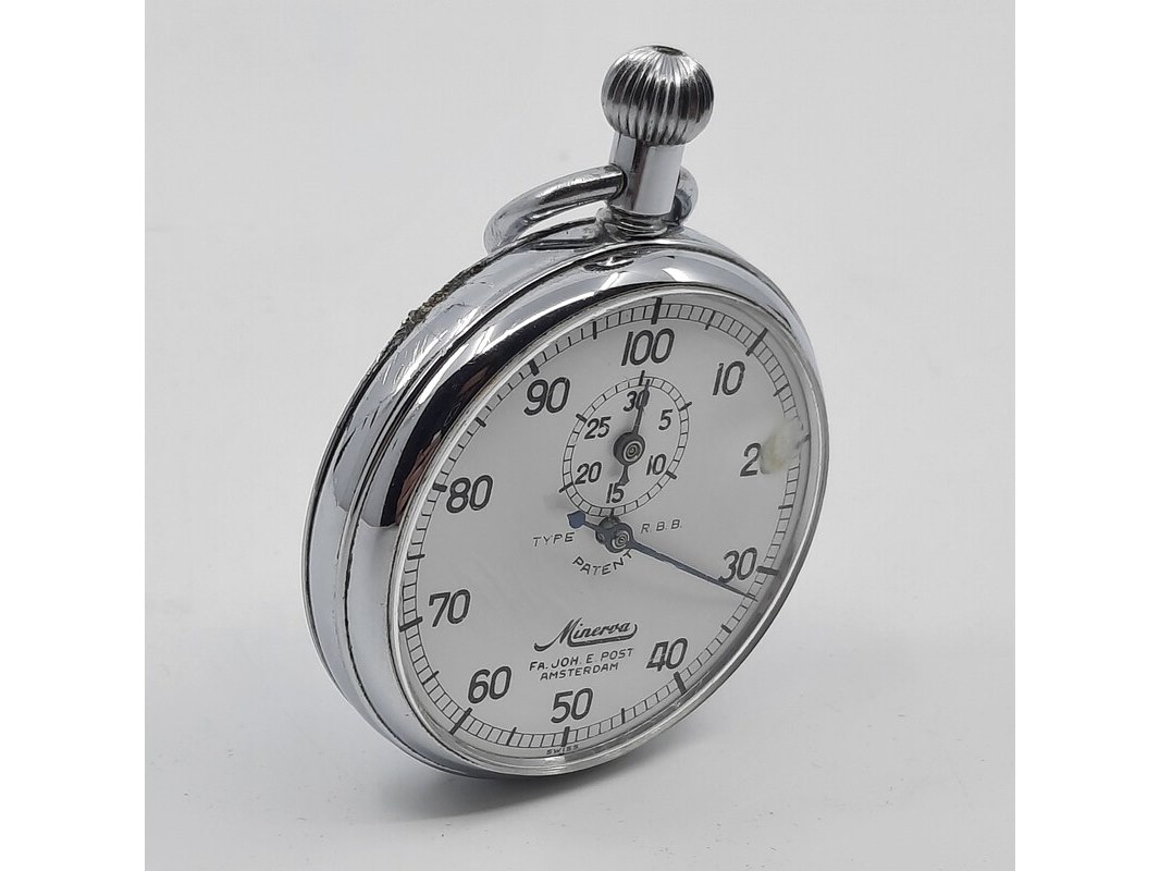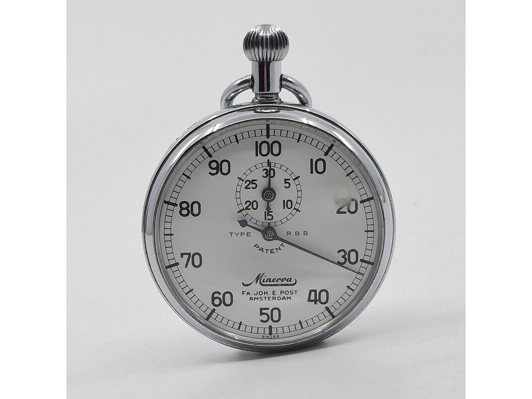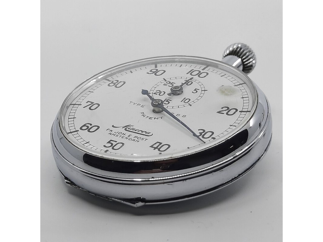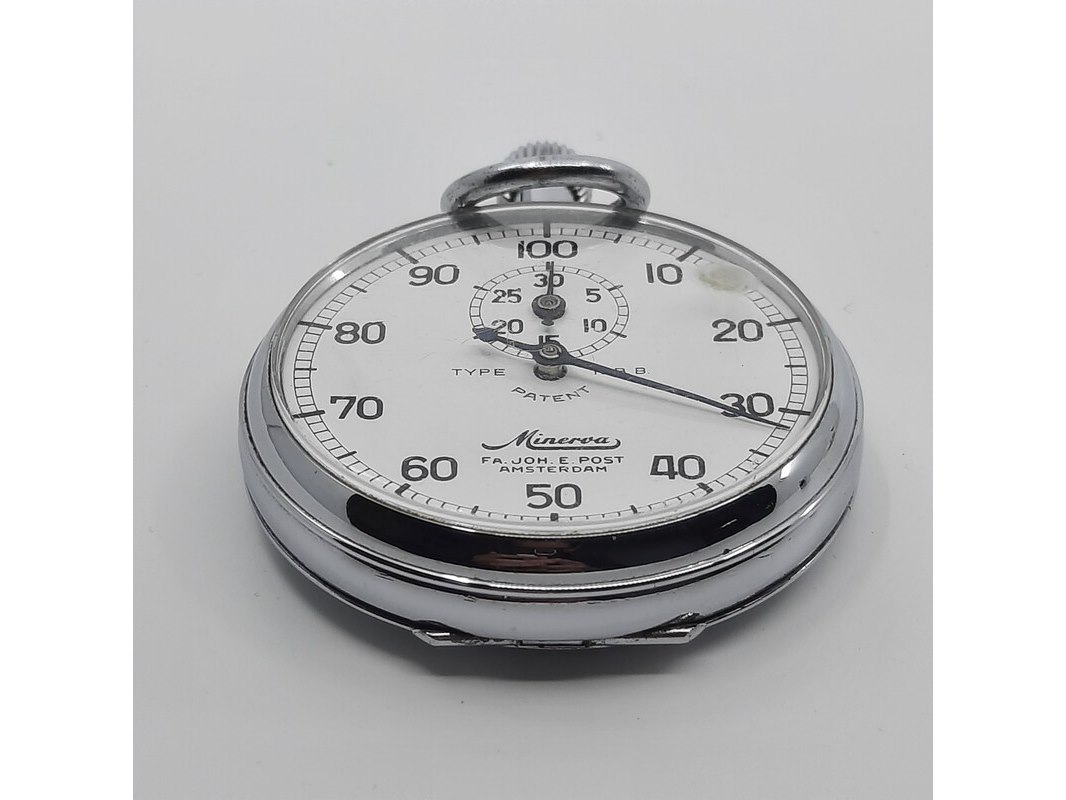 Merk: Minerva Product: Stopwatch Conditie: Gebruikt Specificaties: Klepje achterzijde wil niet open, beschadigingen op behuizing