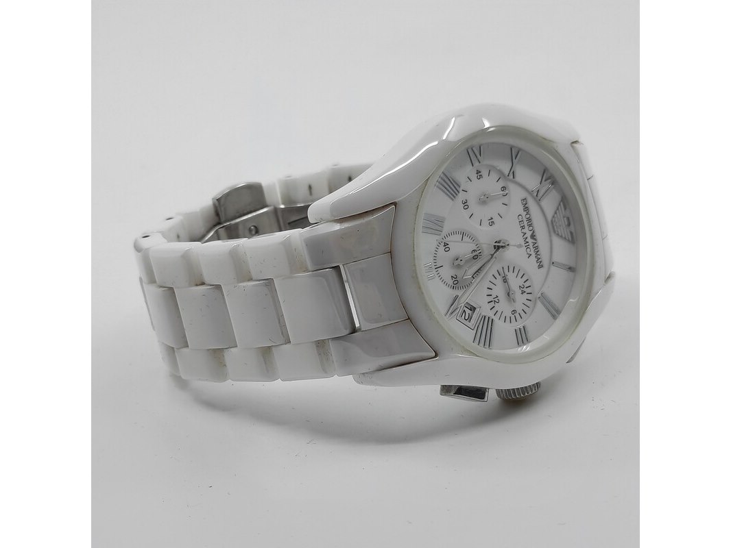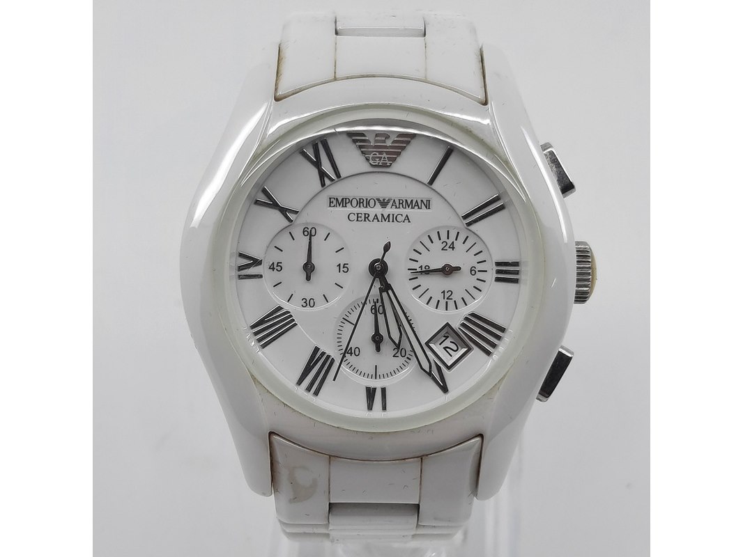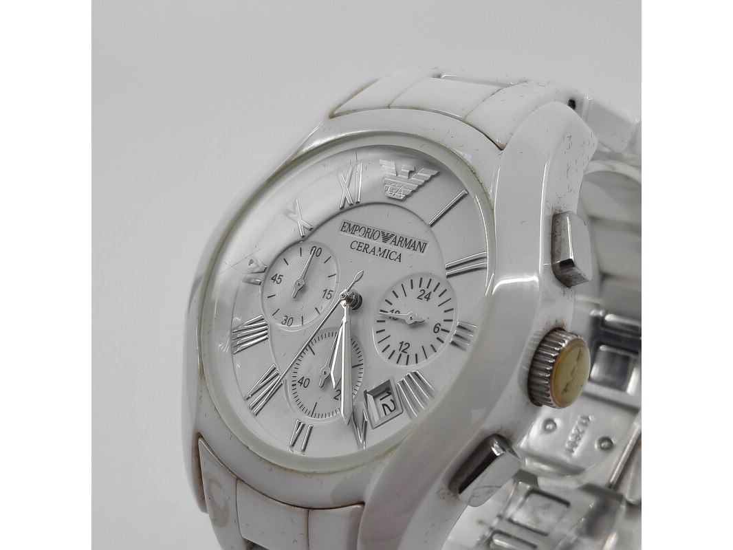 Merk: Emporio Armani Product: Heren polshorloge Conditie: Gebruikt Specificaties: Een onedel heren polshorloge Armani, model Ceramica, AR 1403, de kast en band grotendeels van keramiek vervaardigd, quartz chronograaf. Geen doos en geen certificaat.