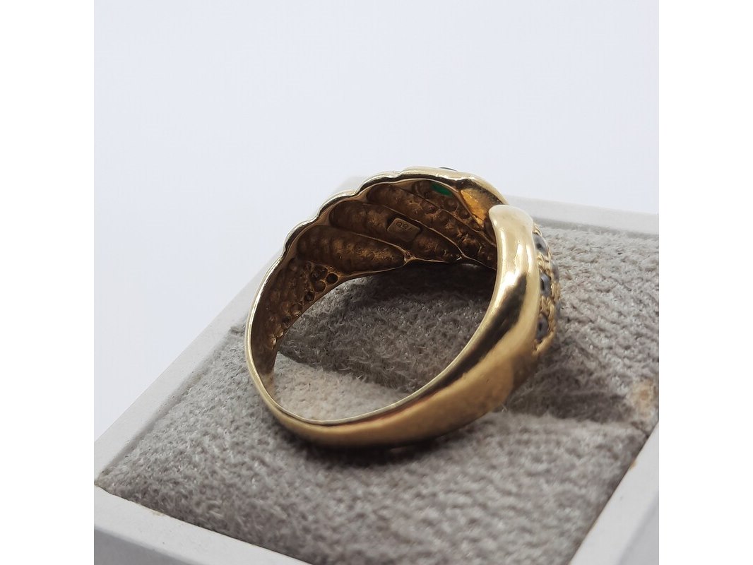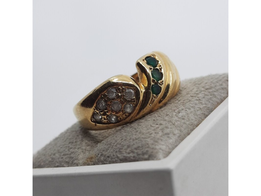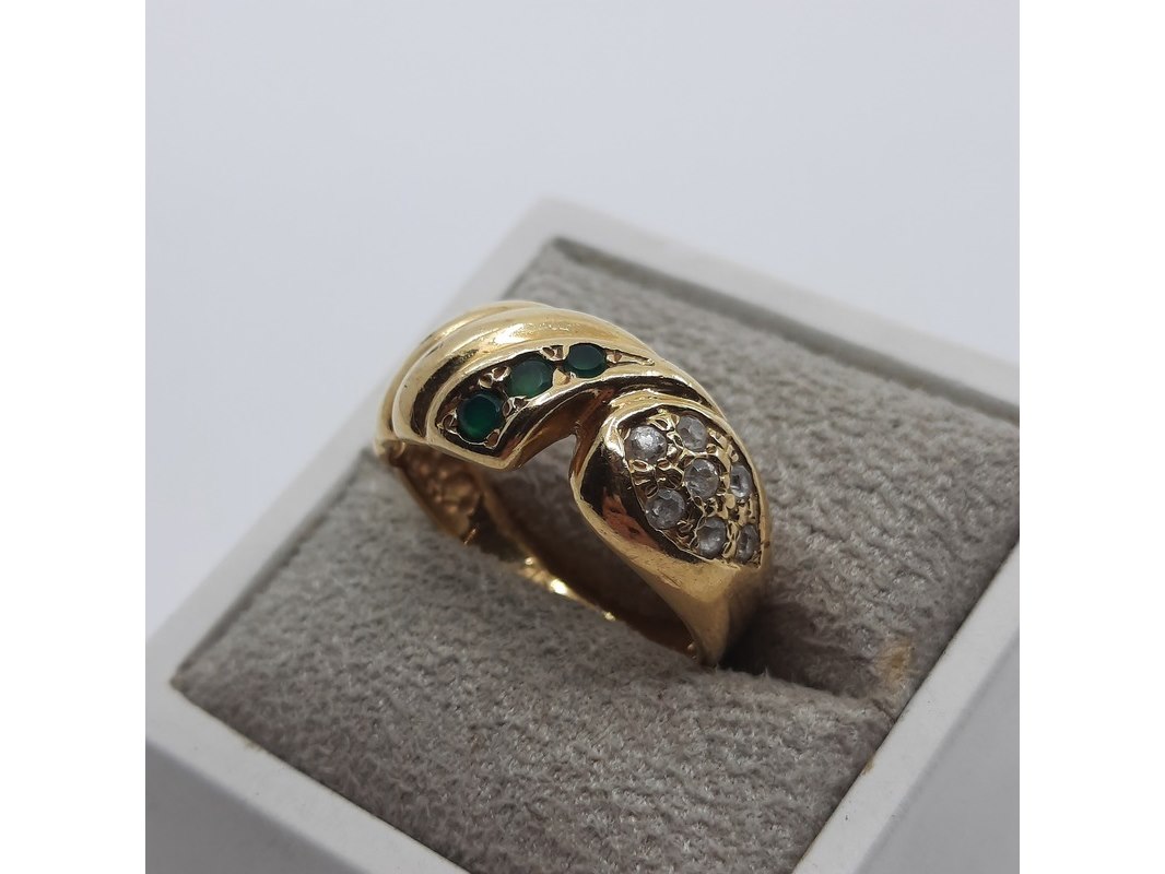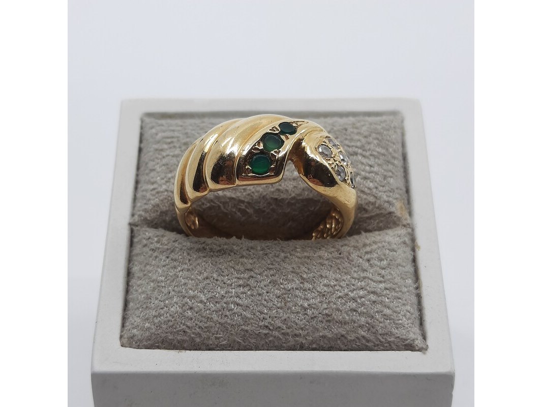 Product: Ring, 18 karaats Afmeting: Ringmaat ca. 18 (57) Conditie: Gebruikt Specificaties: Een 18 karaats geelgouden ring met zirkonia. Gewicht ca. 5,64 gram.