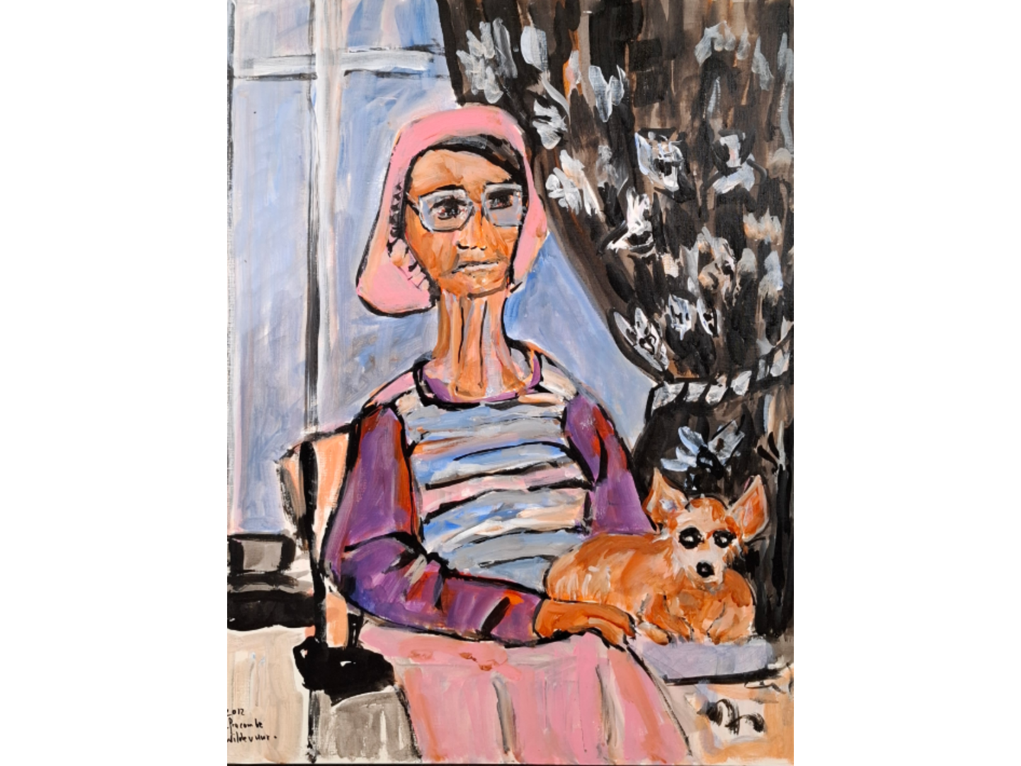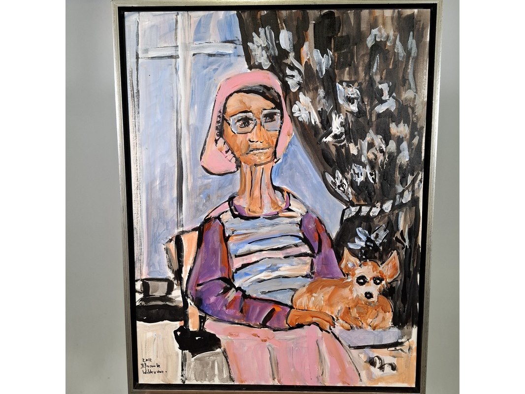Schilderij, maya wildevuur, vrouw met chihuahua, 2012