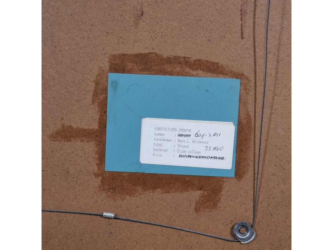 Kunstwerk, maya wildevuur, zijdecollage - strand