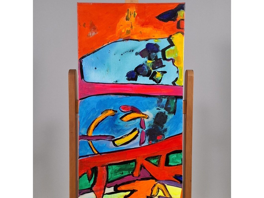 Merk: Maya Wildevuur Product: Acryl schilderij Afmeting: hxb ca. 111x40 cm BouwJaar: 2004