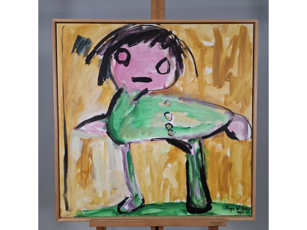 Acryl schilderij, maya wildevuur, abstract kind, 1992