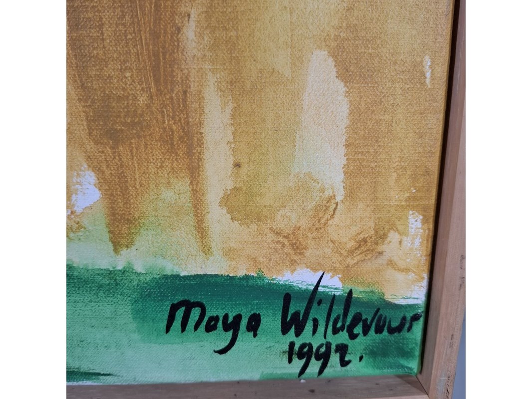 Merk: Maya Wildevuur Product: Acryl schilderij Afmeting: Hxb ca. 73x73 cm BouwJaar: 1992
