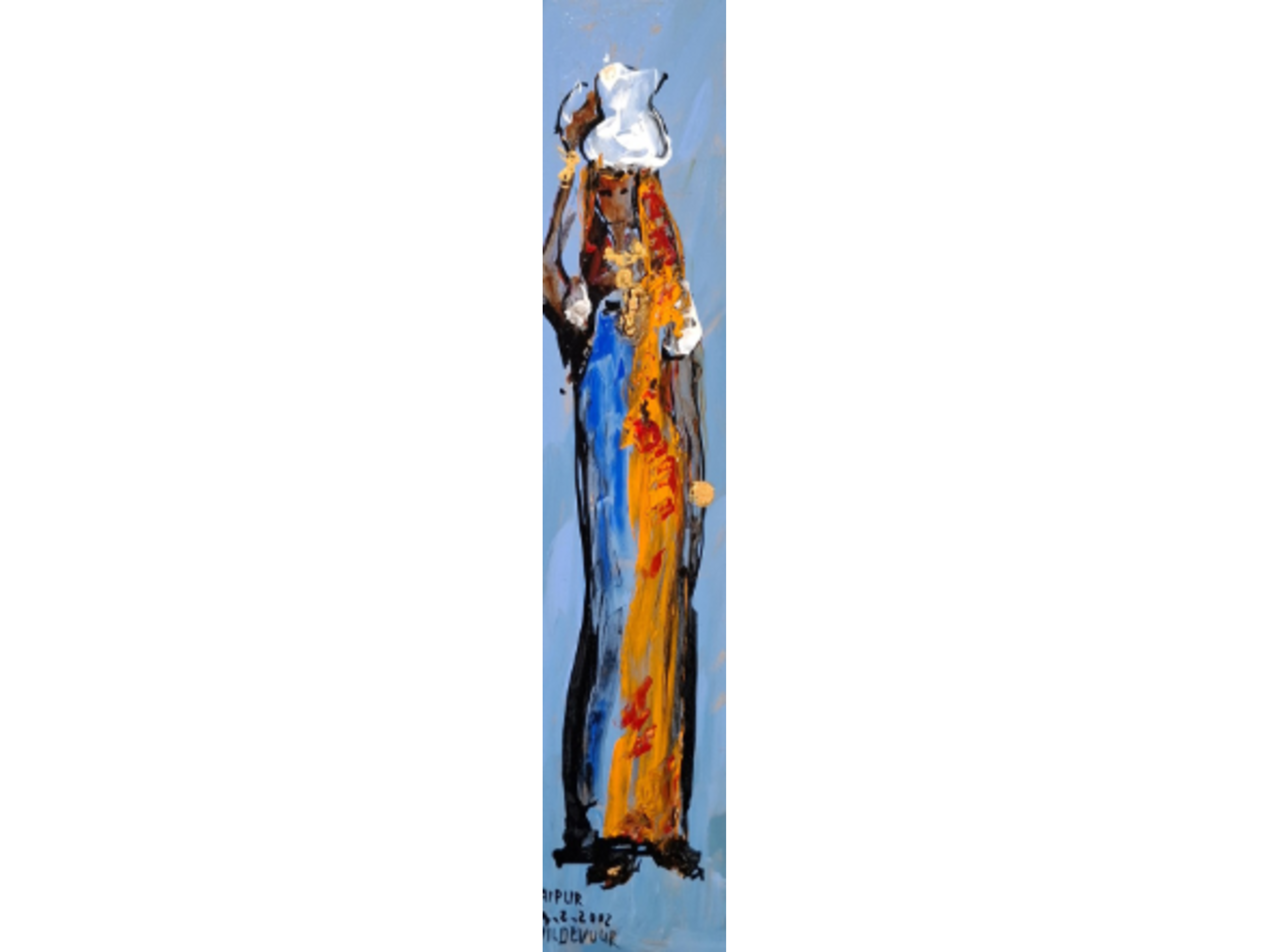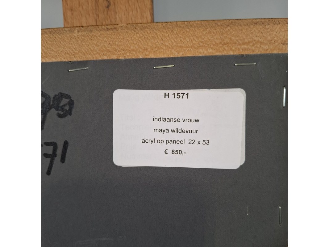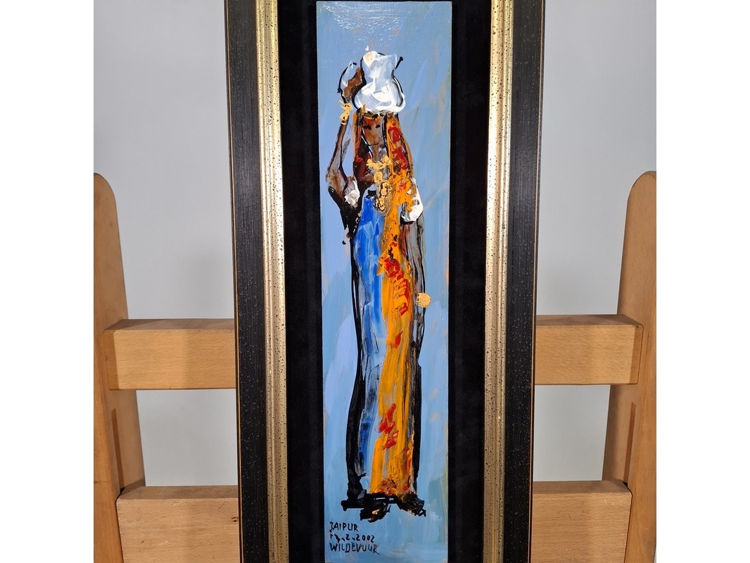 Merk: Maya Wildevuur Product: Acryl schilderij op paneel Afmeting: Hxb ca. 53x22 cm BouwJaar: 2002