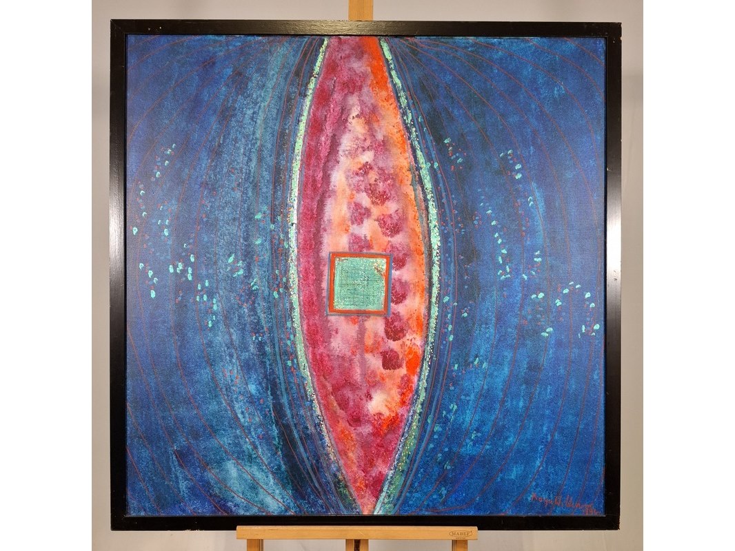 Merk: Maya Wildevuur Product: Acryl schilderij Afmeting: Hxb ca. 105x105 cm BouwJaar: 1992