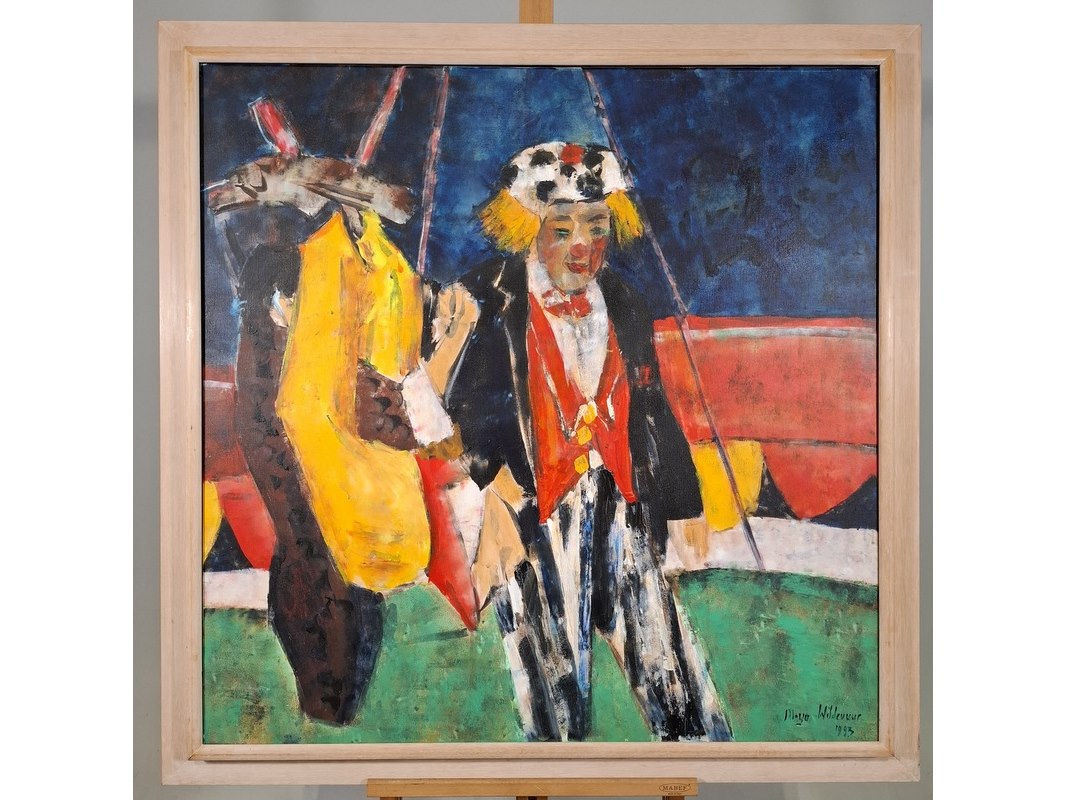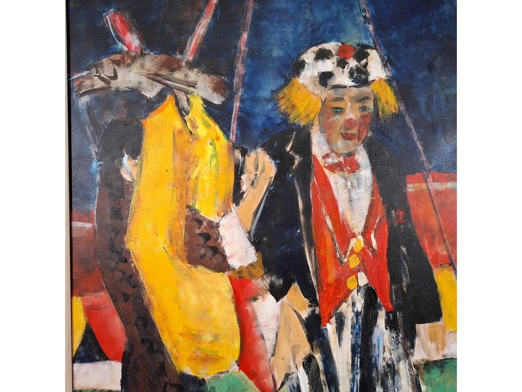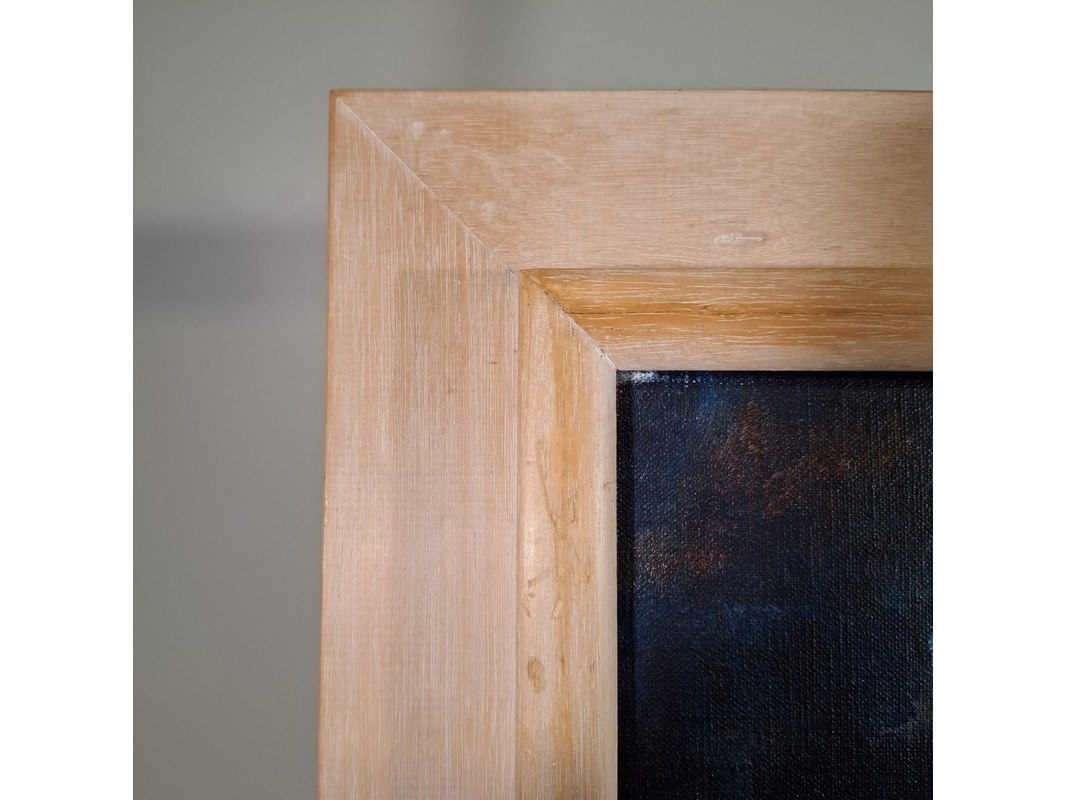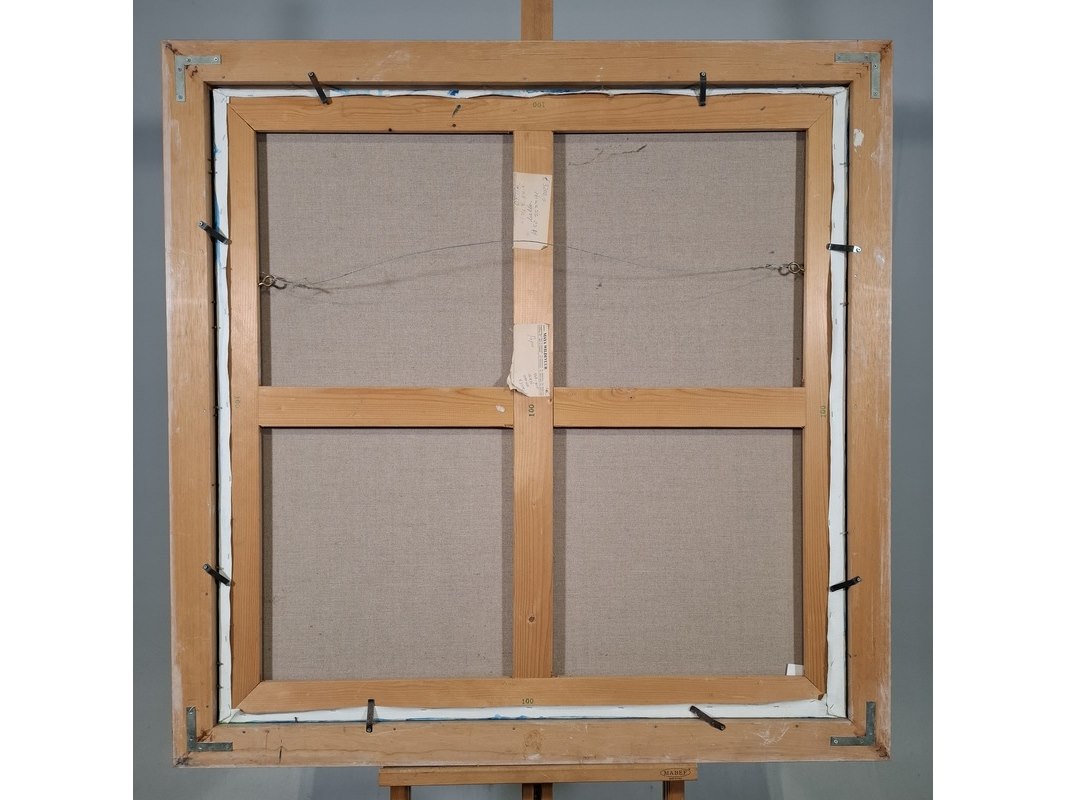 Merk: Maya Wildevuur Product: Acryl schilderij Afmeting: Hxb ca. 114x114 cm BouwJaar: 1992 Specificaties: Lijst ligt deels los.