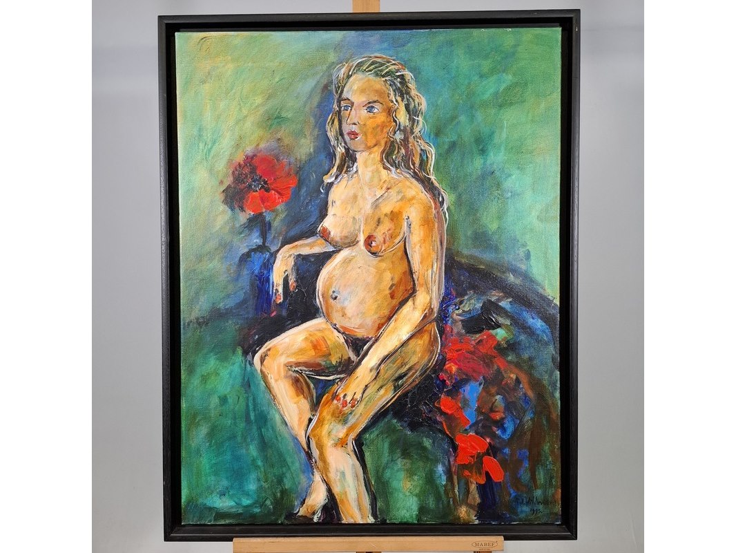 Schilderij, maya wildevuur, zwangere naakte vrouw