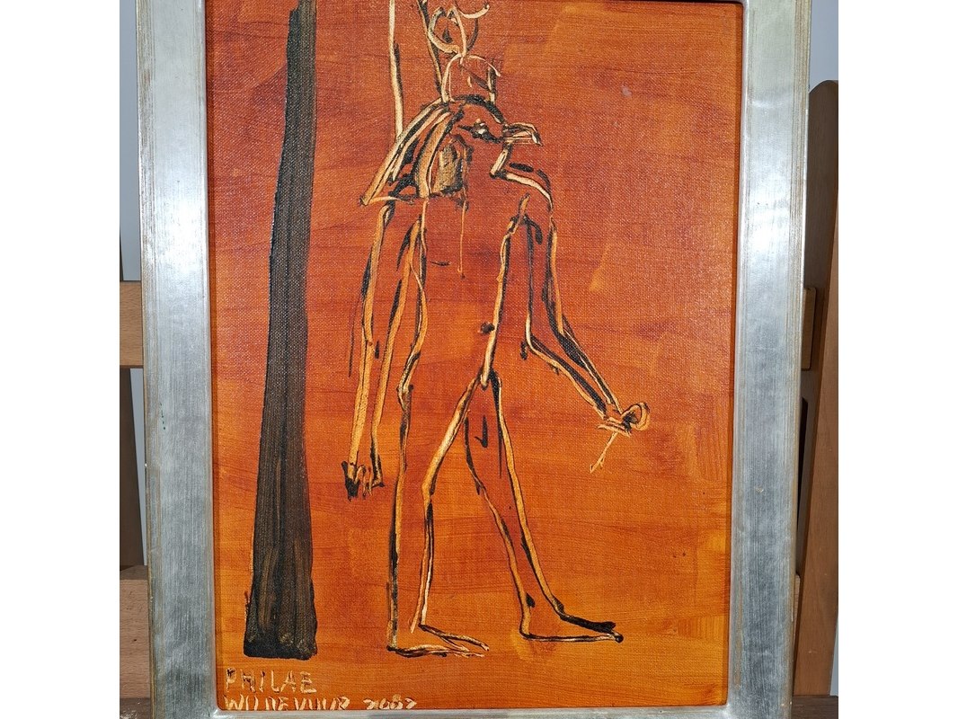 Acryl schilderij op paneel, maya wildevuur, egypte
