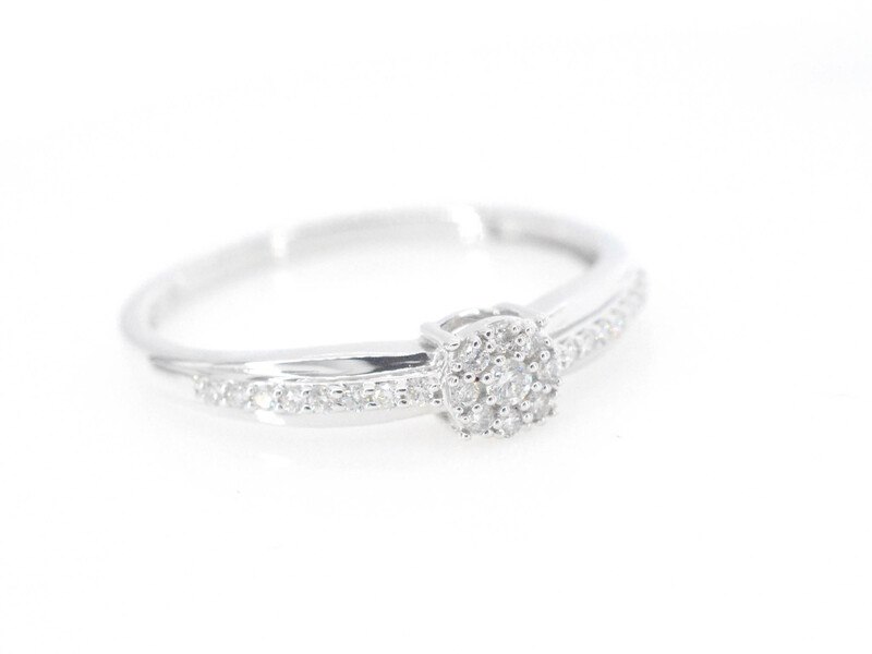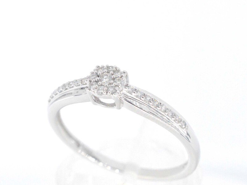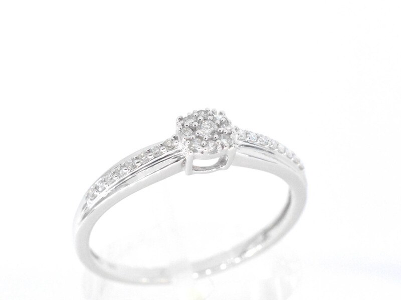Product: Witgouden ring met diamanten Specificaties: Diamant: Natuurlijk Slijpvorm: Briljant geslepen Gewicht (carat): 0.15 carat Kleur: F-G Zuiverheid: SI-P Slijpkwaliteit: Zeer mooi Juweel: Ring Gewicht: 1.5 gram Ringmaat (op maat gemaakt*): 53 (17 mm) Materiaal: 14 karaat (585) Conditie: Nieuw Verpakking: Luxe sieradendoos Toelichting: De kwaliteit is overgenomen van het rapport behorend bij item. De waardebepaling is een beoordeling van een gecertificeerde diamantair, gebaseerd op consumentenprijzen. Consumentenprijs: € 1.663,-