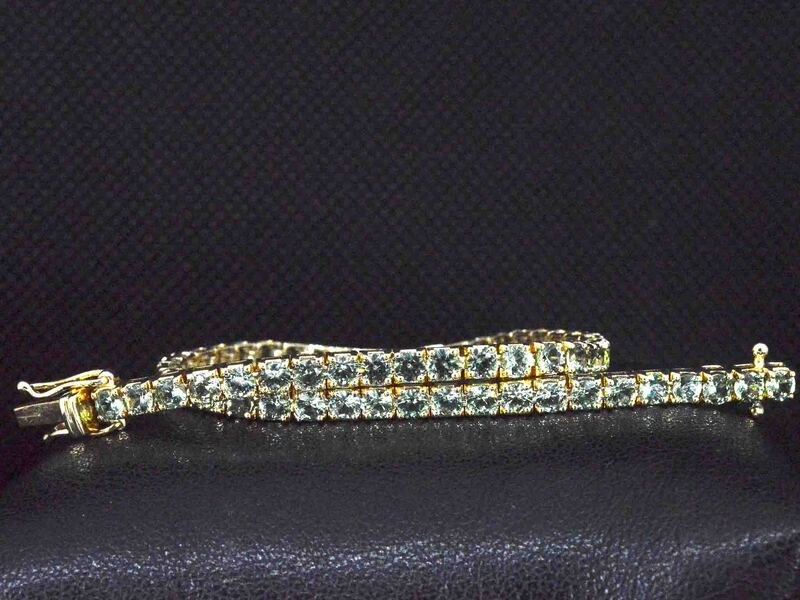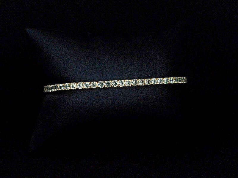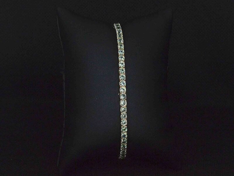 Product: Gouden tennisarmband met 8.00 carat aan groene saffieren Specificaties: Edelsteen: Saffieren Aantal: 58 stuks Slijpvorm: Rond geslepen Gewicht (carat): 8.00 carat Kleur: Licht groen Zuiverheid: Met natuurlijke insluitsels Juweel: Armband Gewicht: 8 gram Afmetingen/lengte: 18 cm Materiaal: 14k goud (585) Conditie: Nieuw Verpakking: Luxe sieradendoos Toelichting: De kwaliteit is overgenomen van het rapport behorend bij item. De waardebepaling is een beoordeling van een gecertificeerde diamantair, gebaseerd op consumentenprijzen. Consumentenprijs: € 9.590,-