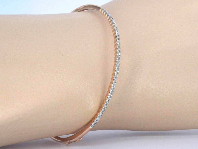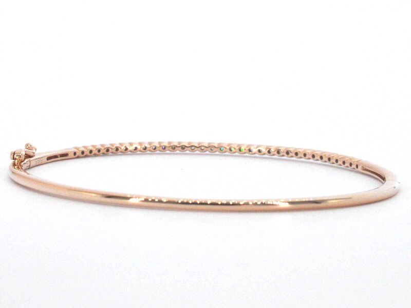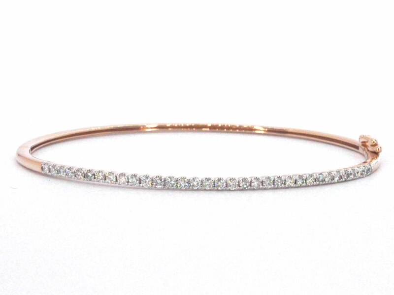 Product: Rosegouden bangle armband met natuurlijke briljant geslepen diamanten Specificaties: Diamant: Natuurlijk Aantal: 33 stuks Slijpvorm: Briljant geslepen Gewicht (carat): 0.60 carat Kleur: F-G Zuiverheid: VS-SI-P Slijpkwaliteit: Zeer mooi Juweel: Armband Gewicht: 5 gram Afmetingen/lengte: 6 x 5.3 cm Materiaal: 14K goud (585) Conditie: Nieuw Verpakking: Luxe sieradendoos Toelichting: De kwaliteit is overgenomen van het rapport behorend bij item. De waardebepaling is een beoordeling van een gecertificeerde diamantair, gebaseerd op consumentenprijzen. Consumentenprijs: € 5.460,-