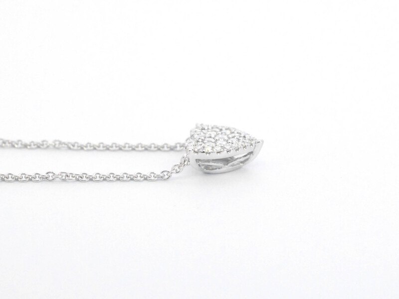 Product: Witgouden hartvormige hanger en collier vol met diamanten Specificaties: Diamant: Natuurlijk Slijpvorm: Briljant geslepen Gewicht (carat): 0.40 carat Kleur: F-G Zuiverheid: VS Slijpkwaliteit: Zeer mooi Juweel: Hanger (incl. Ketting) Gewicht: 3.8 gram Afmetingen/lengte: 38 - 42 cm (verstelbaar) Materiaal: 18K goud (750) Conditie: Nieuw Verpakking: Luxe sieradendoos Toelichting: De kwaliteit is overgenomen van het rapport behorend bij item. De waardebepaling is een beoordeling van een gecertificeerde diamantair, gebaseerd op consumentenprijzen. Consumentenprijs: € 6.388,-