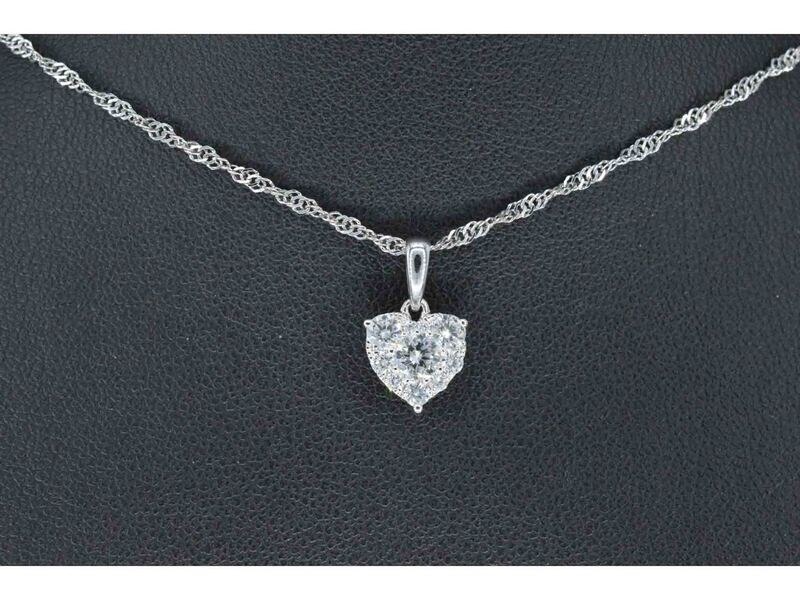 Product: Witgouden hartvormige hanger met diamanten Specificaties: Diamant: Natuurlijk Slijpvorm: Briljant geslepen Gewicht (carat): 0.75 carat Kleur: F-G Zuiverheid: VS Slijpkwaliteit: Zeer mooi Juweel: Hanger (excl. ketting) Gewicht: 1 gram Materiaal: 18K goud (750) Conditie: Nieuw Verpakking: Luxe sieradendoos Toelichting: De kwaliteit is overgenomen van het rapport behorend bij item. De waardebepaling is een beoordeling van een gecertificeerde diamantair, gebaseerd op consumentenprijzen. Consumentenprijs: € 4.988,-