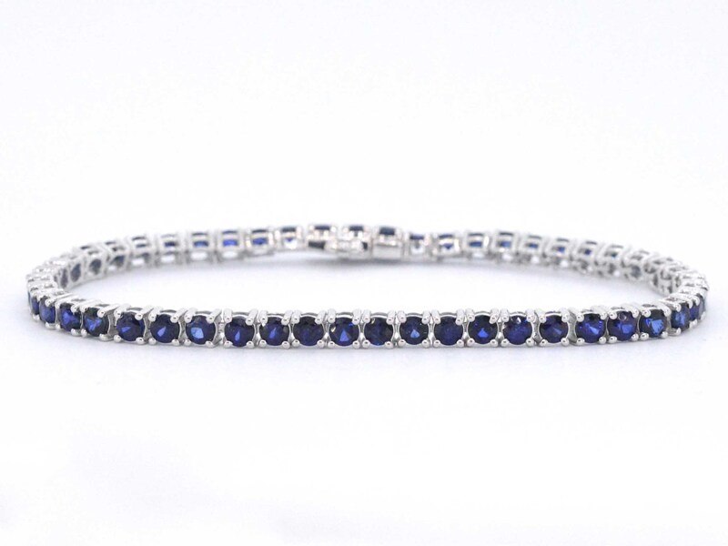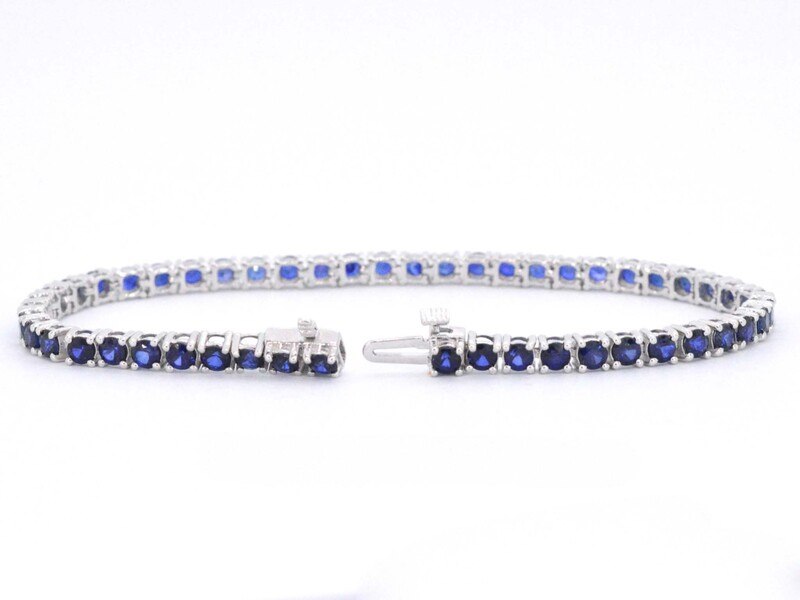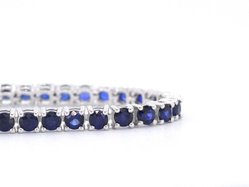 Product: Witgouden tennisarmband met saffieren Specificaties: Edelsteen: Saffier Slijpvorm: Briljant geslepen Gewicht (carat): 7.50 carat Kleur: blauw Zuiverheid: Met natuurlijke insluitsels Slijpkwaliteit: Very good Juweel: Armband Gewicht: 10 gram Afmetingen/lengte: 18 cm Materiaal: 14 karaat (585) Conditie: Nieuw Verpakking: Luxe sieradendoos Toelichting: De kwaliteit is overgenomen van het rapport behorend bij item. De waardebepaling is een beoordeling van een gecertificeerde diamantair, gebaseerd op consumentenprijzen. Consumentenprijs: € 6.930,-