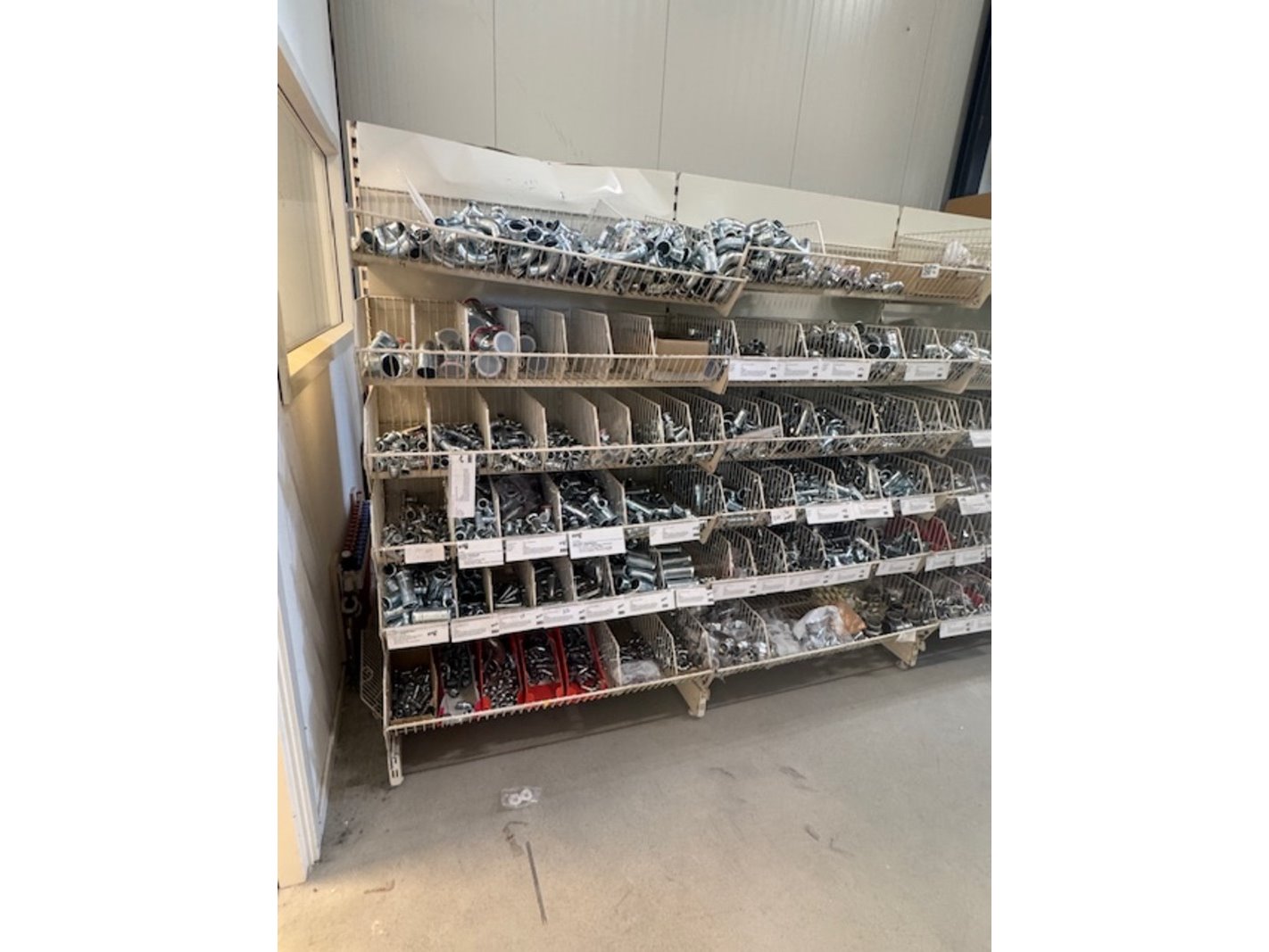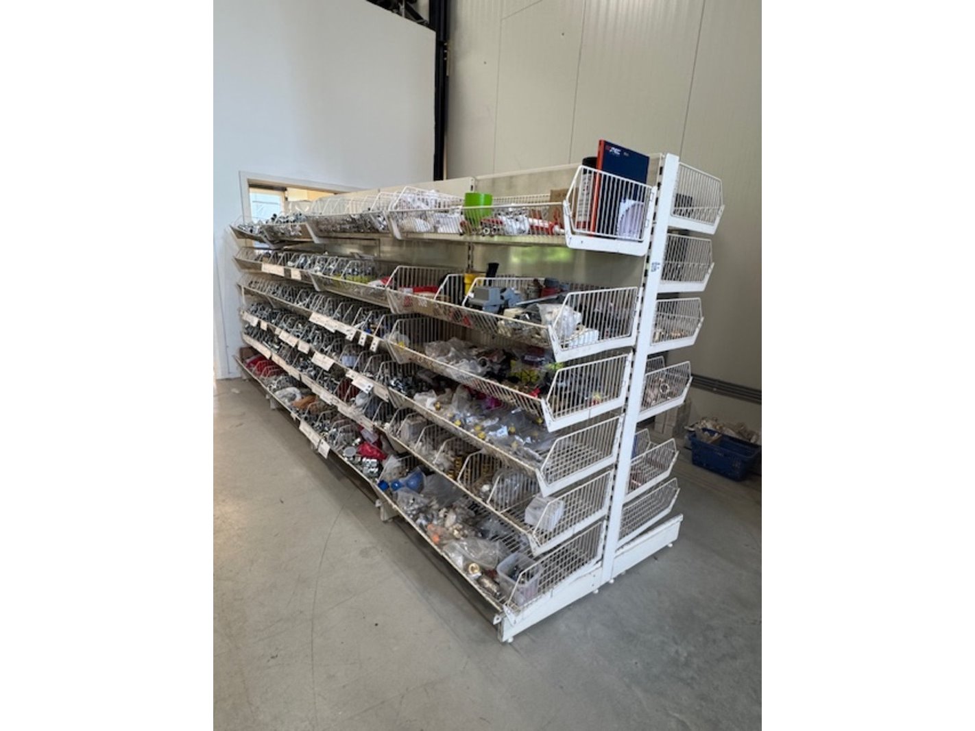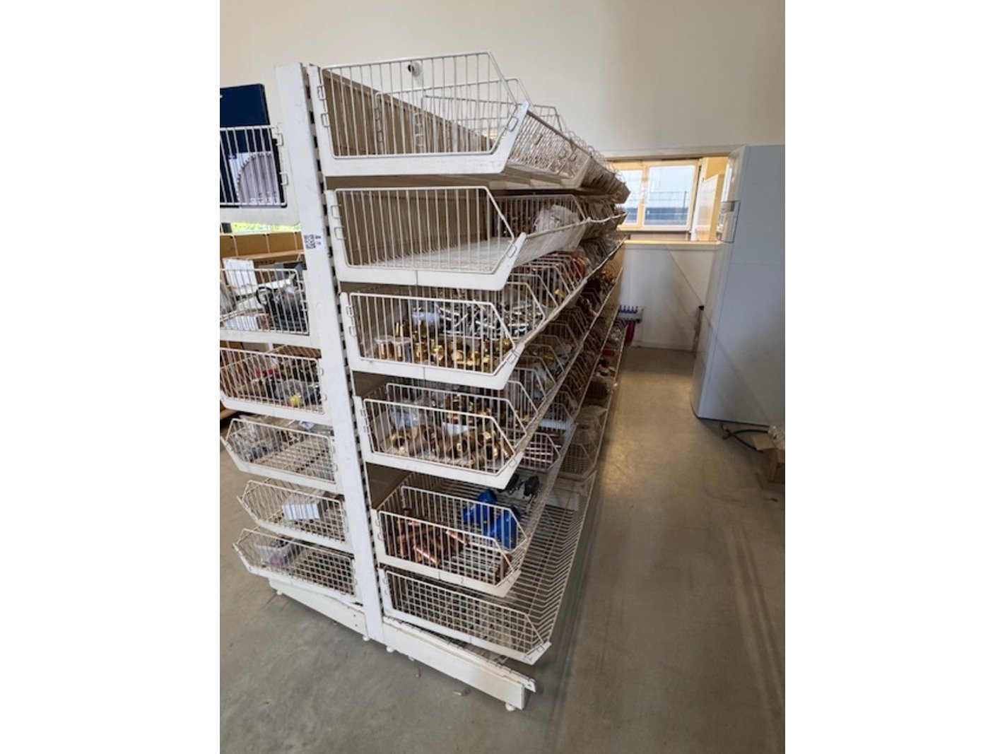 Product: 4 delen gondela stelling Kleur: crèmekleurig Materiaal: metaal