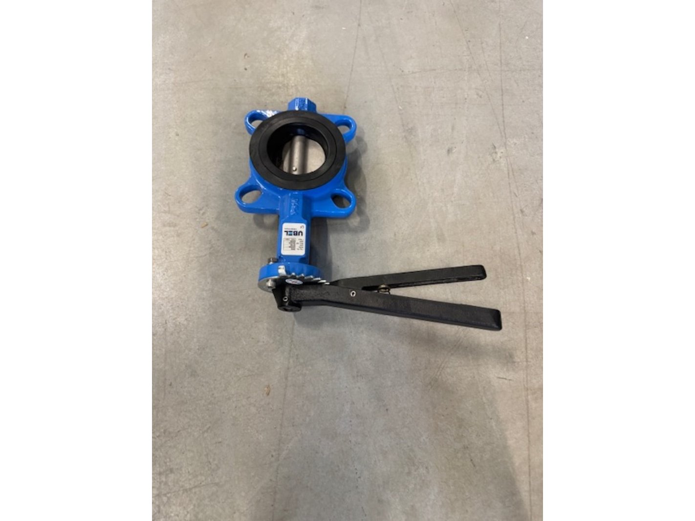 Merk: Ubel Product: Vlinderklepafsluiter Kleur: blauw Materiaal: gietijzer