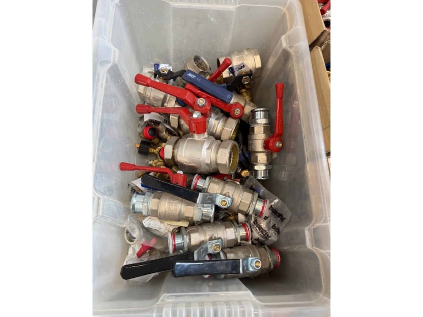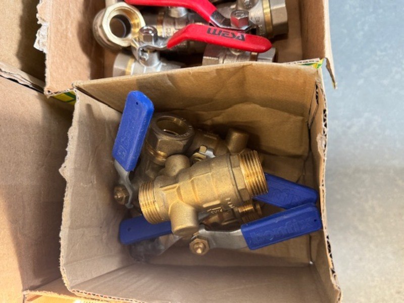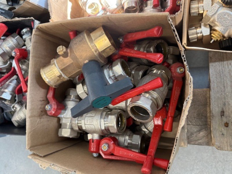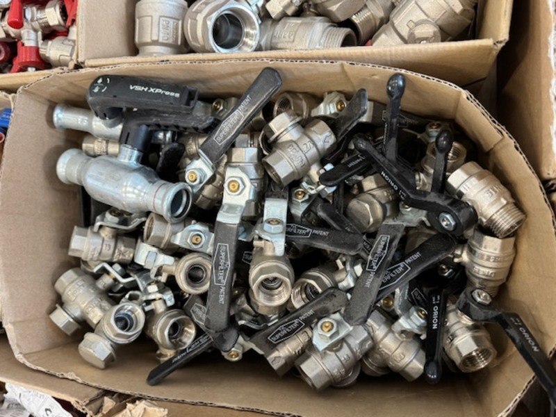 Product: Partij kranen en afsluiters Specificaties: Diverse maten en uitvoeringen